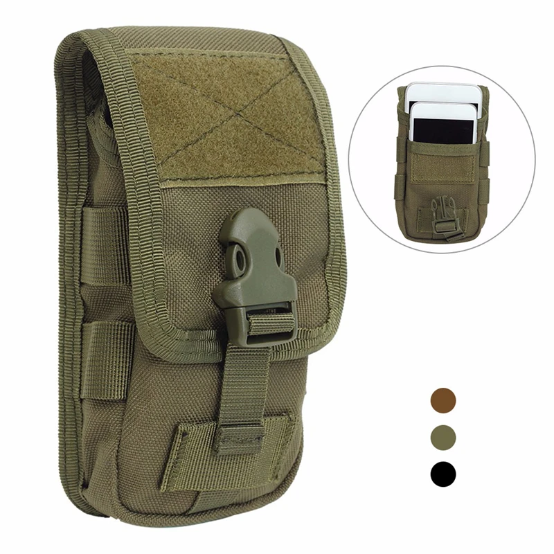 Tipo: bolsa táctica de teléfono móvil de doble capa. Material: nailon 1000D. Tamaño: 9cm (largo) X 17cm (alto) X 4cm (ancho). Peso: 100g. Diseño: sistema Molle; Doble bolsillo Ocasión: Caza; Deportes al aire libre; Ciclismo; Pesca; Camping, etc.
