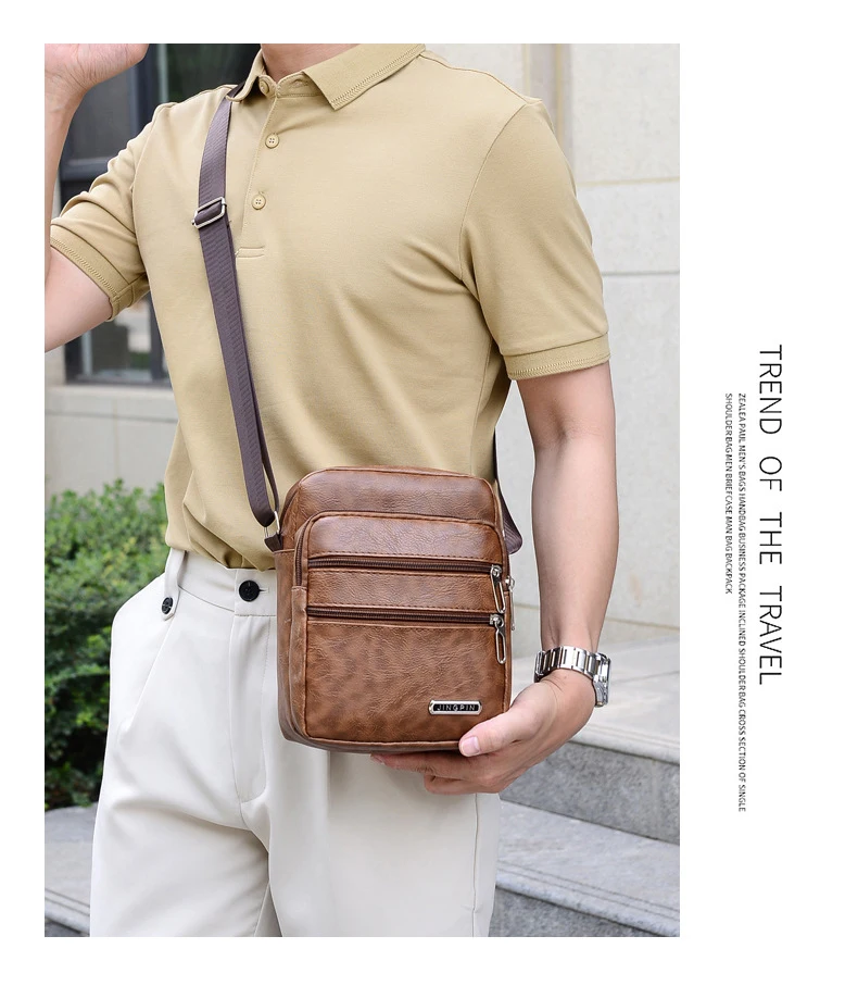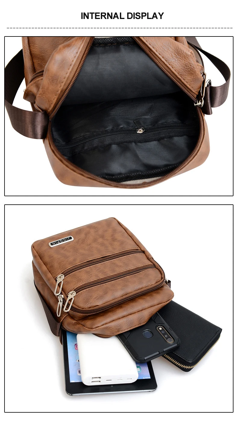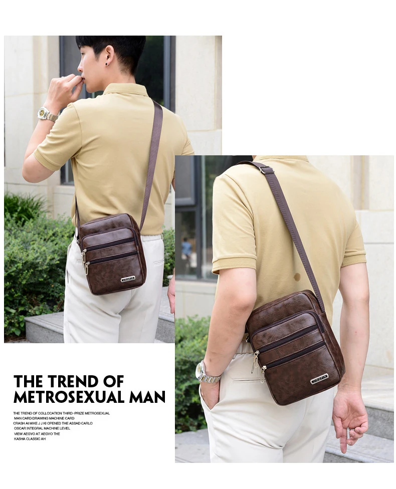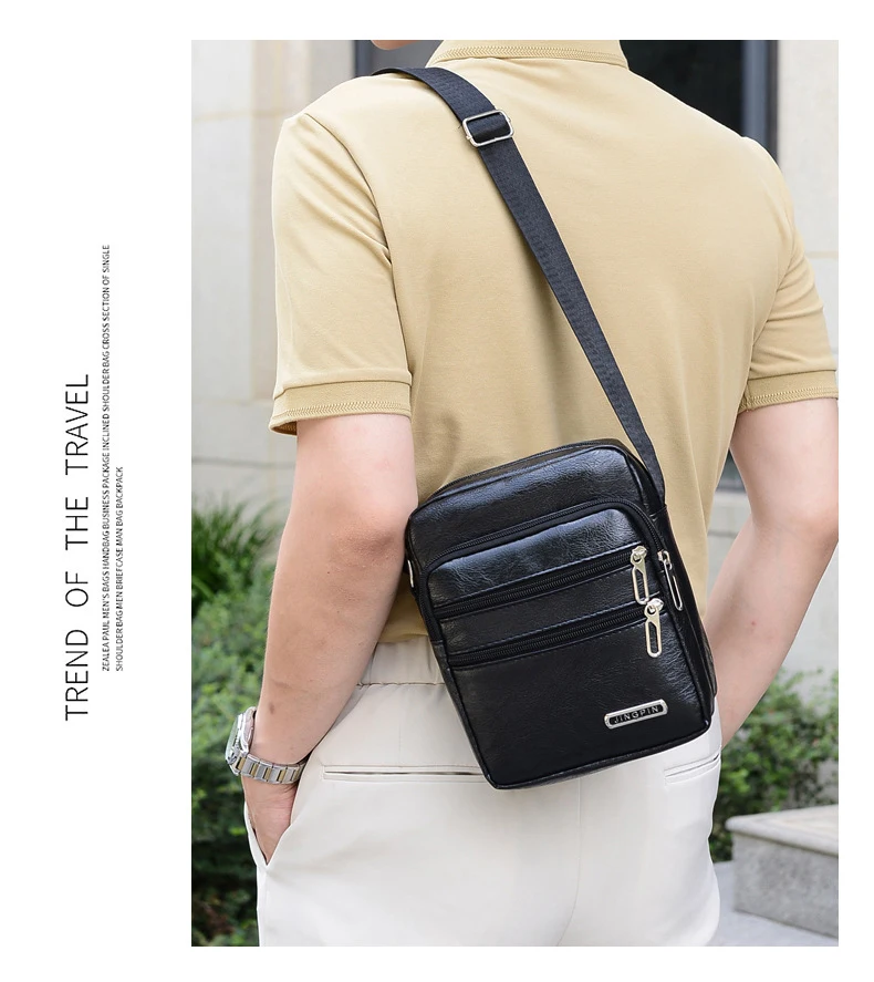 Bolso bandolera de cuero PU para hombre, bandoleras cruzadas de hombro, bolsos de gran capacidad multifuncionales