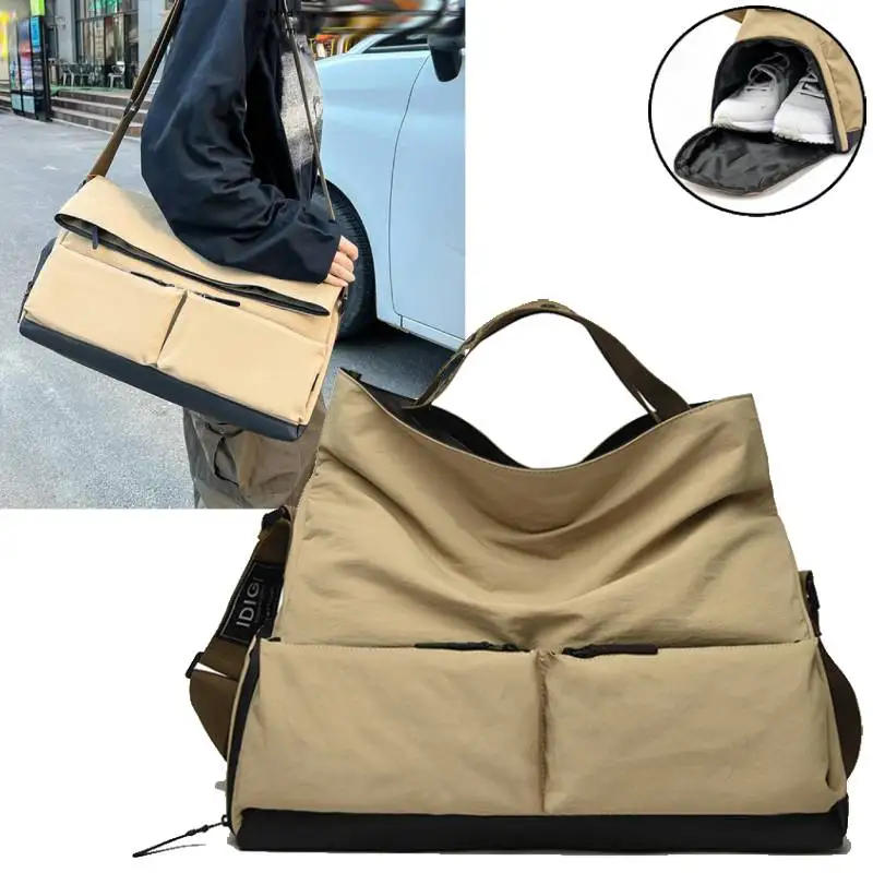 Bolsa de viaje del mismo estilo para hombres y mujeres, bolsa de gimnasio portátil de gran capacidad de corta distancia, compartimento para zapatos con separación en seco y húmedo