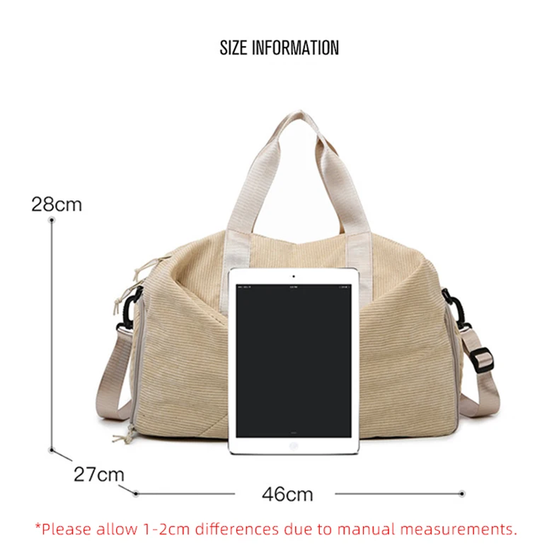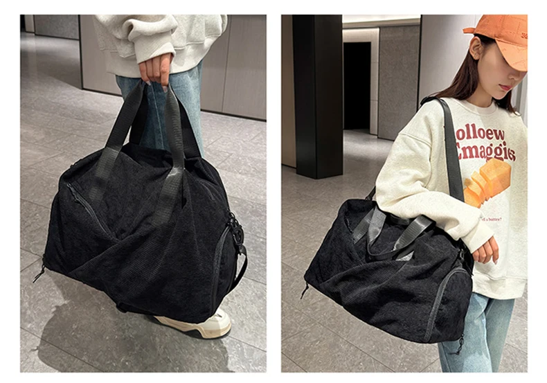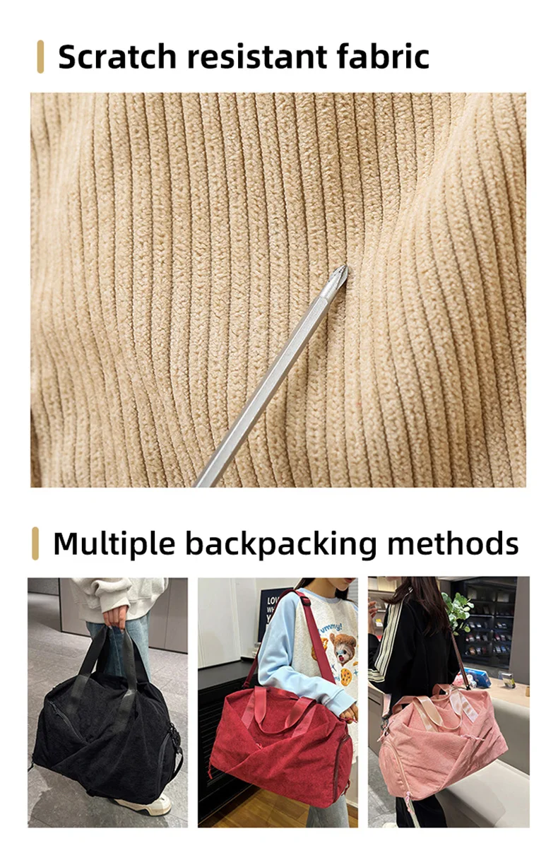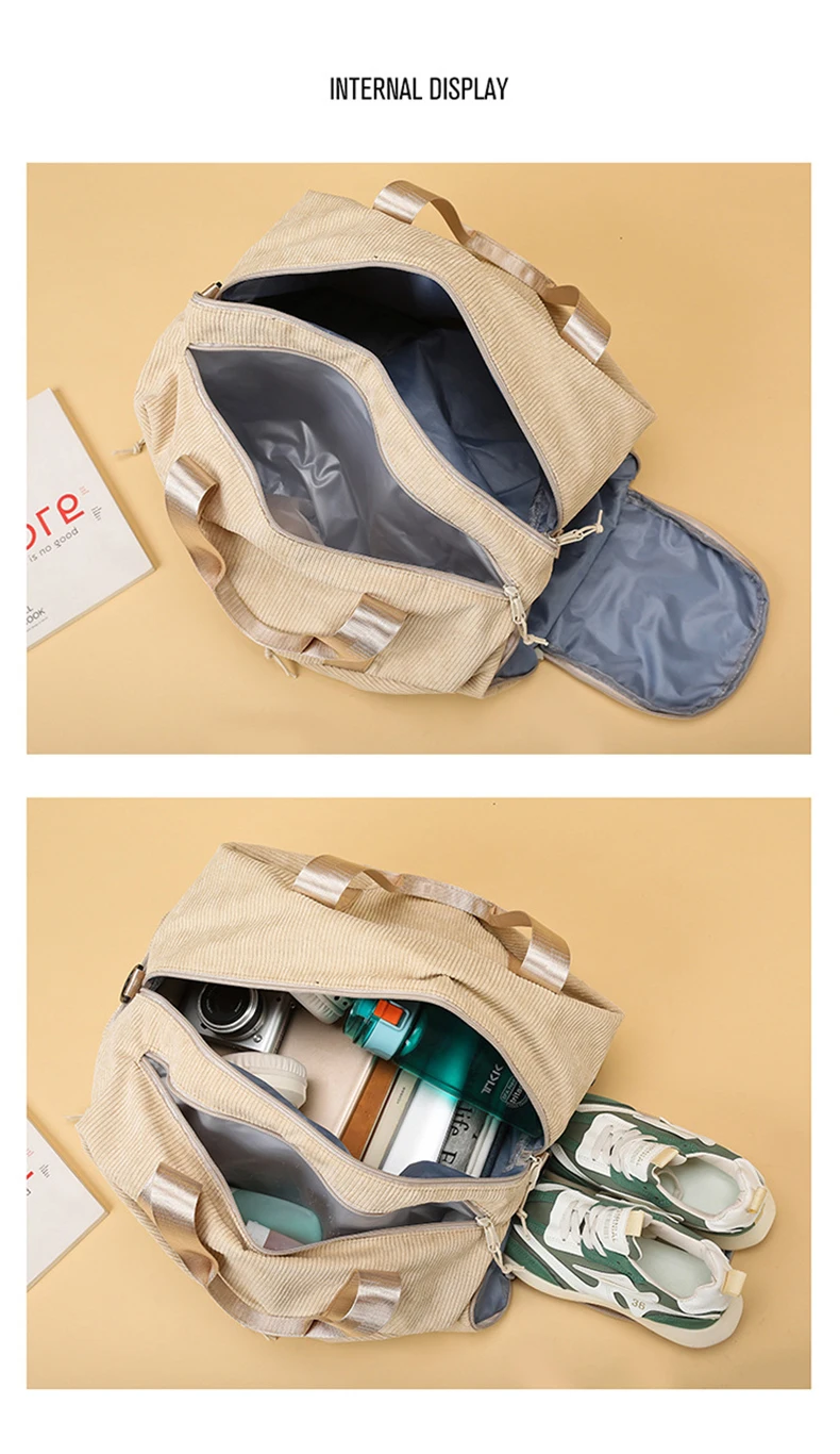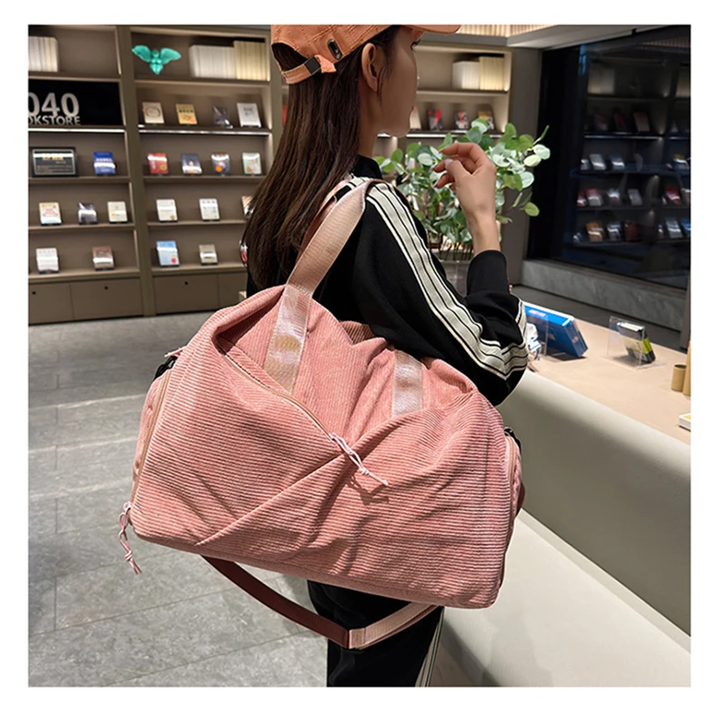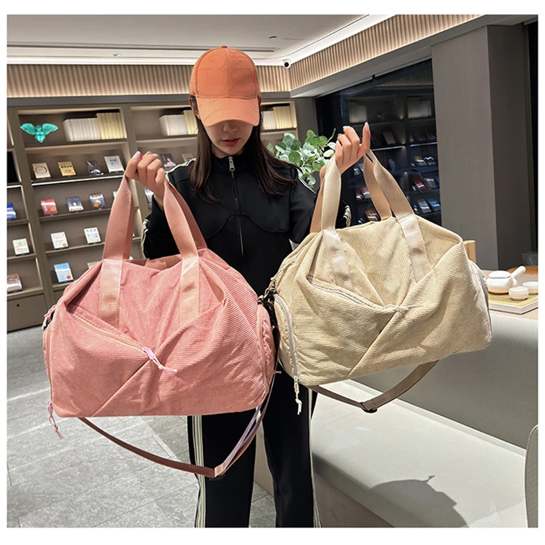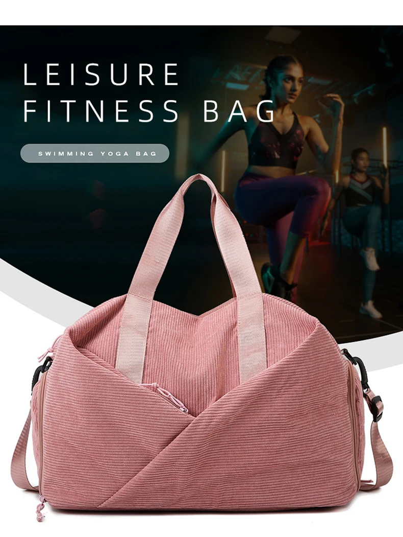 1. Nombre: Bolsa de gimnasio húmeda de pana/nailon para freír, bolsas de viaje para fitness, bolsas de hombro para fin de semana