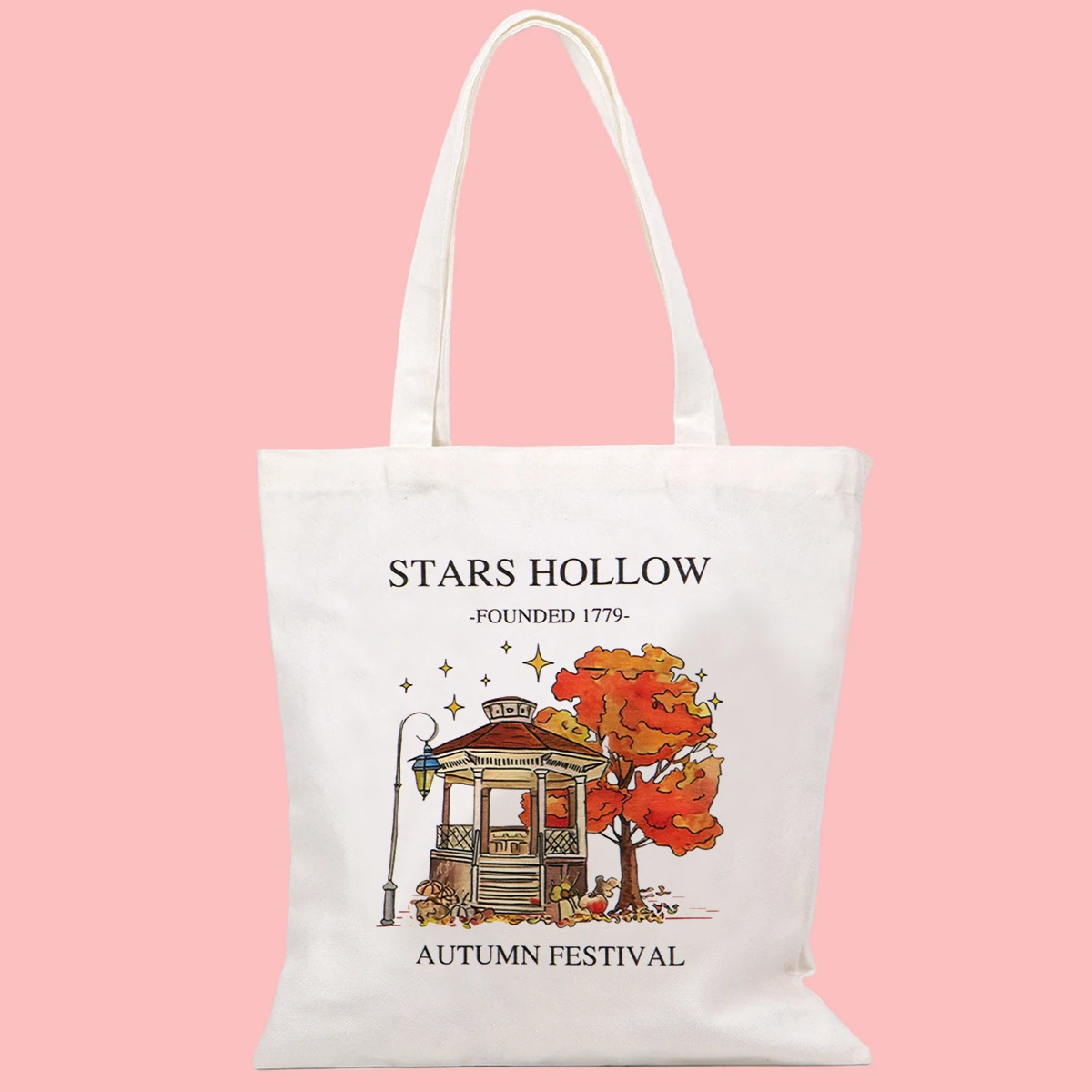 Bolso de hombro con diseño hueco de estrellas para niña, bolso de lona, bolso de mano plegable, bolso de compras para mujer, bolsa de almacenamiento Vintage