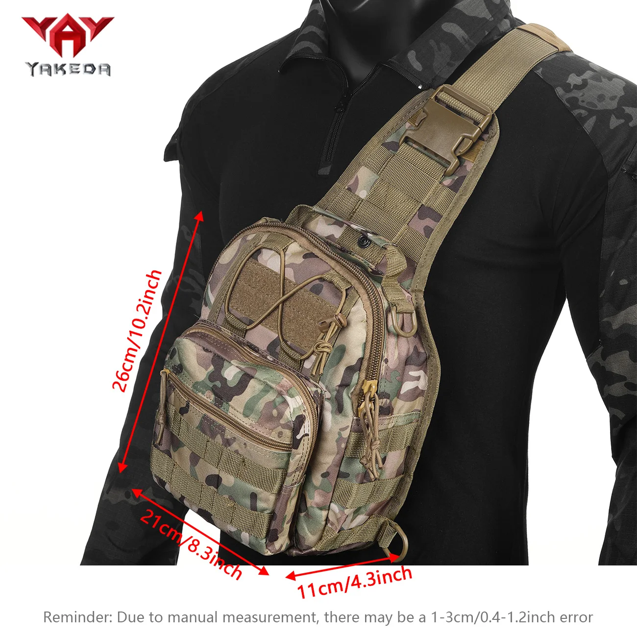 Bolso de hombro de entrenamiento bolso cruzado 900D bolso con correa de transporte bolso de pecho compartimento de múltiples bolsillos correas MOLLE