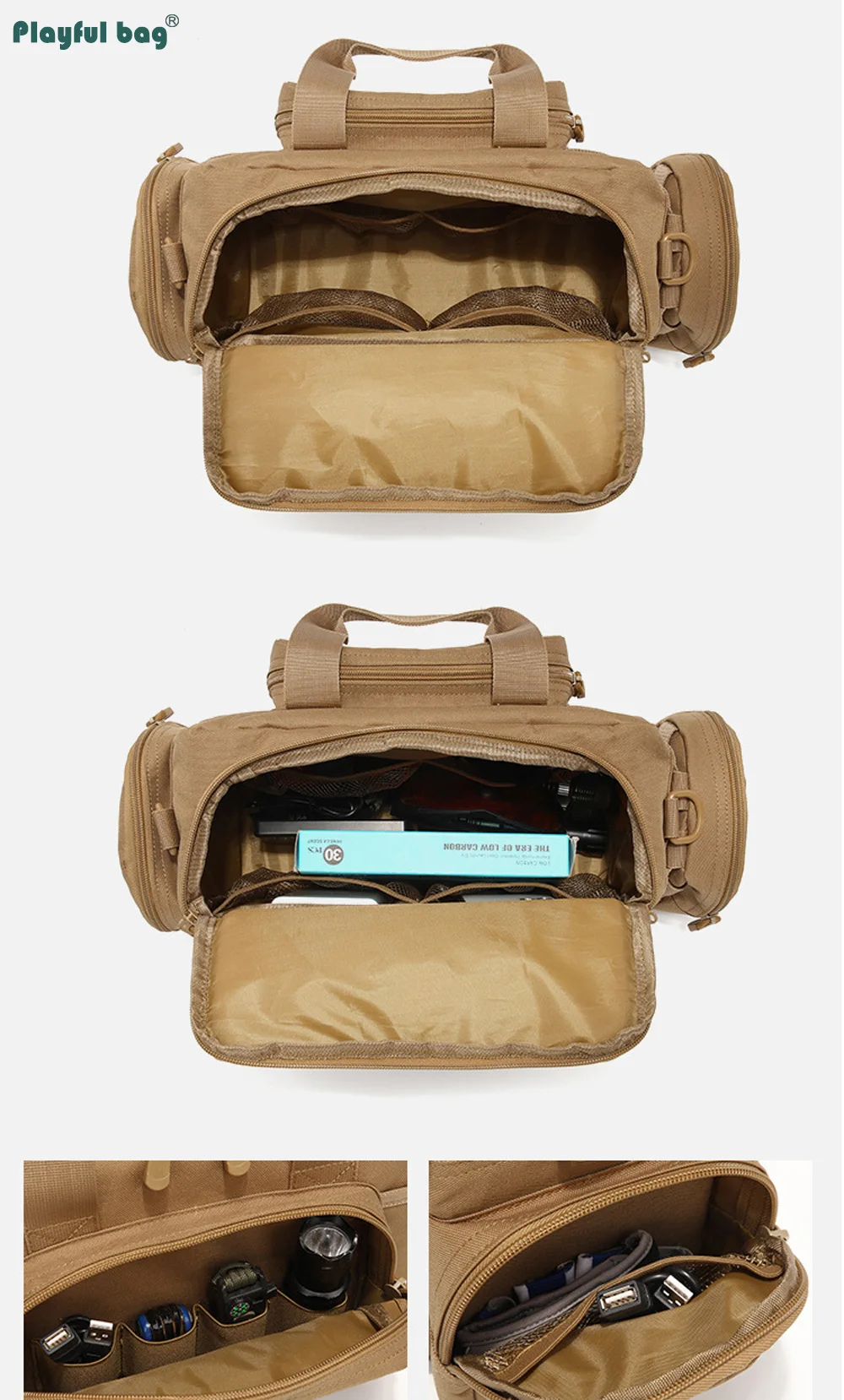 Nombre del producto: Bolso táctico multiusosTela: tela impermeable OxfordCinta: Cinta de nailonEspecificación: 42x17x24CMPeso: 0,6 KG