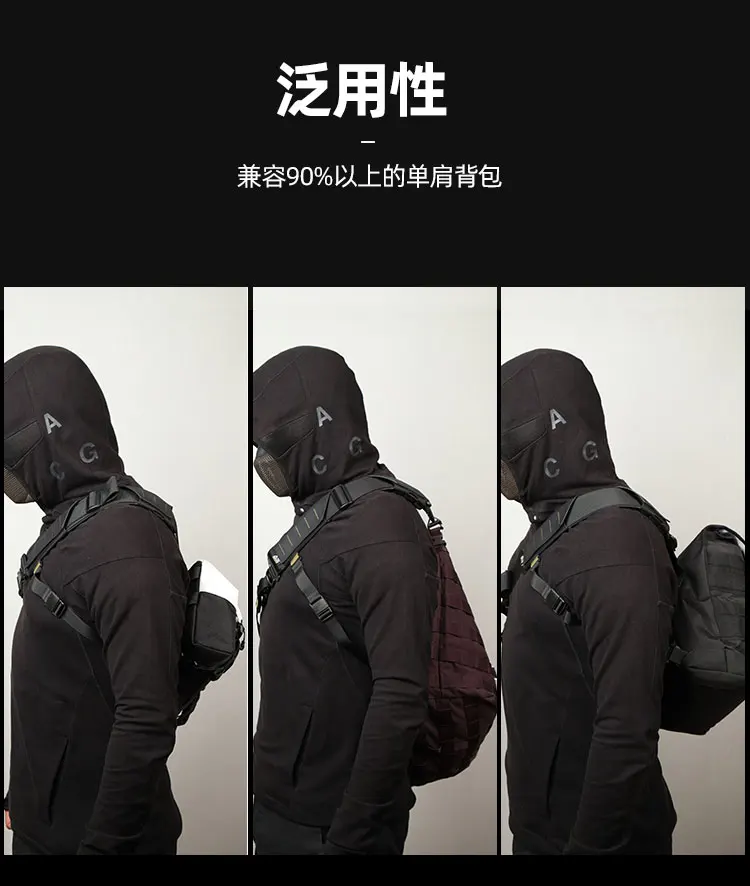 Bolso de hombro individual, sistema de hombrera antigravedad, mochila MOLLE, HOMO TECWARE extendido