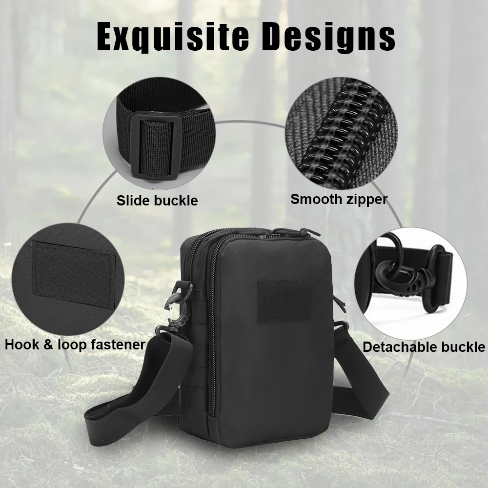 1.Fabricada con tela Oxford duradera, esta bolsa resiste el desgaste de entornos exteriores hostiles, lo que garantiza una larga vida útil. Ofrece cierta resistencia al agua, maneja lluvia ligera para evitar que los artículos se mojen y mantenerlos seguros.Adecuado para cazar, escalar, correr, andar en bicicleta y otras actividades al aire libre.
