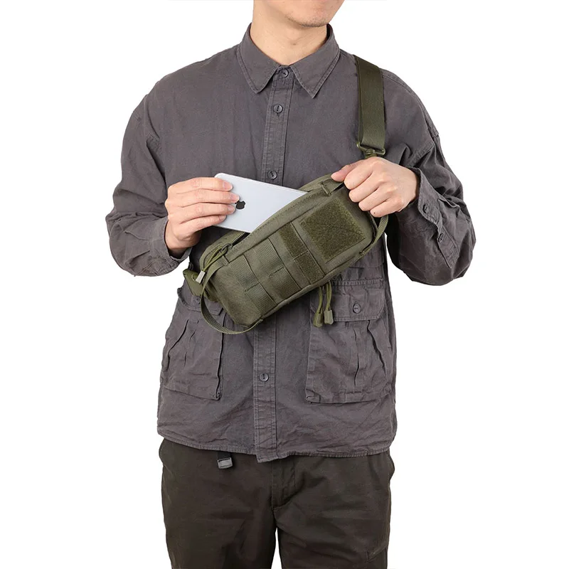 4. La parte delantera de la bolsa tiene un sistema molle de Velcro cortado con láser para almacenar herramientas adicionales, montar parches memorables,.