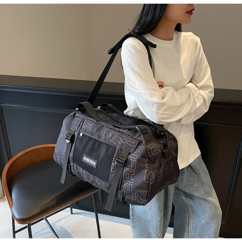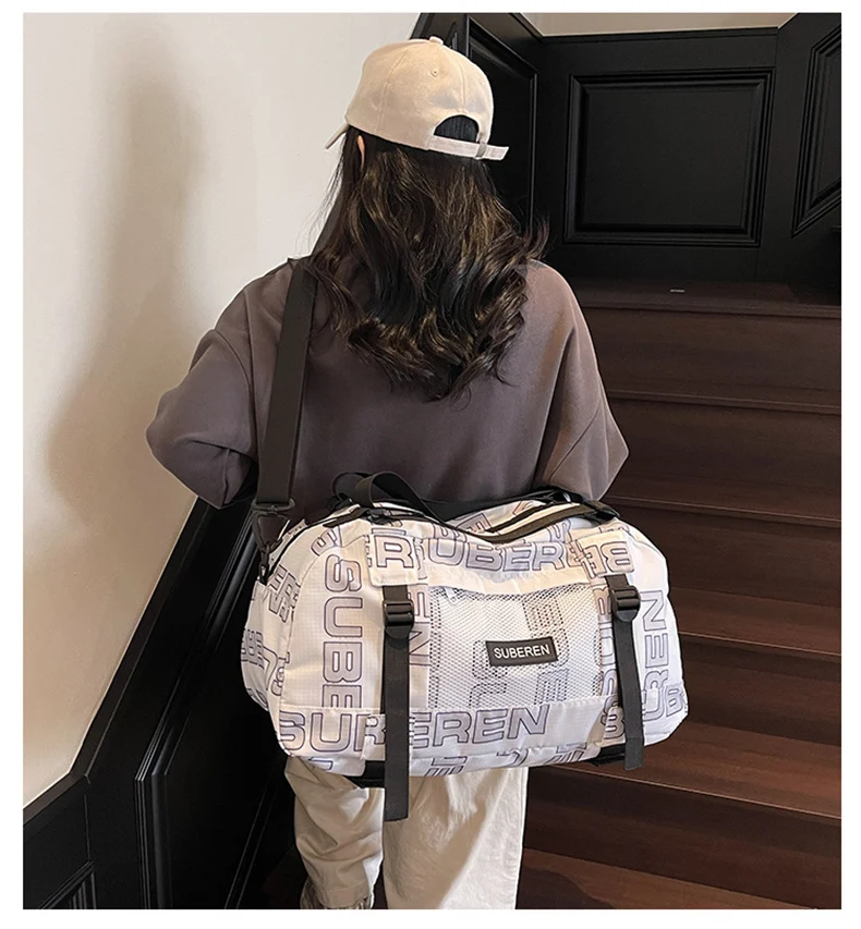 Bolso de hombro tipo bandolera con letras de ocio para Fitness, gran espacio de almacenamiento, bolso de viaje corto, mochila multifuncional