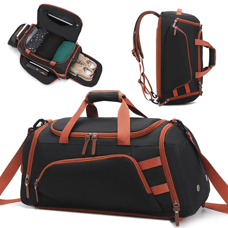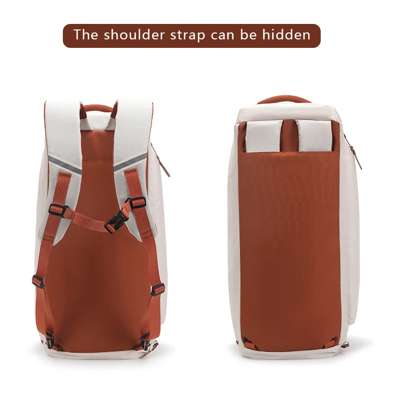 1. Large-capacity main pocket, the mouth of the bag can be opened 180 °, built-in mesh zip pocket, the bag body set up zip secondary pockets, with separate shoe compartment and computer compartment. Easy access and storage.