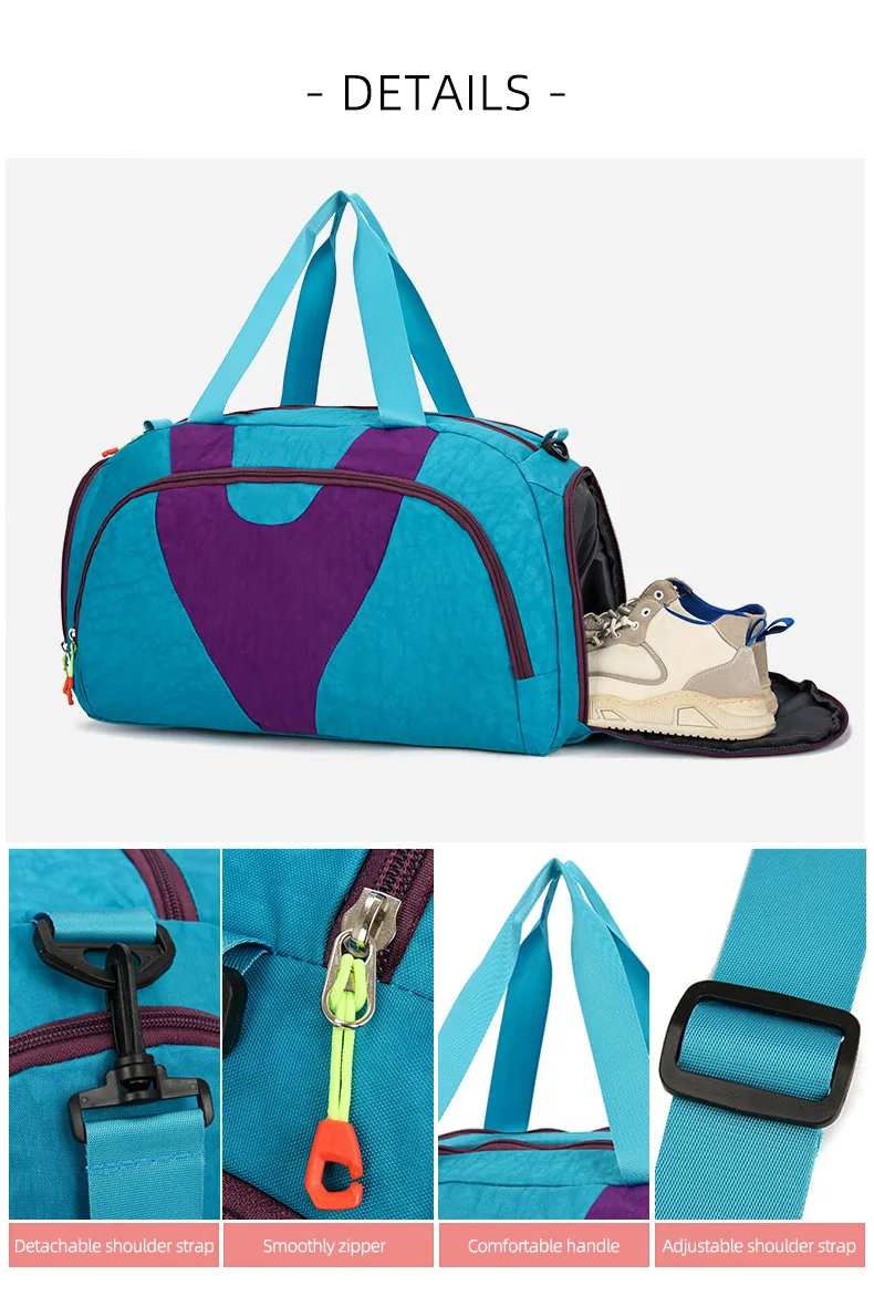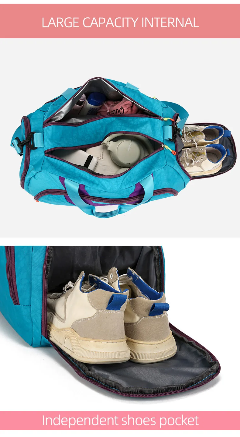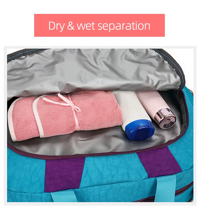 Bolsa de gimnasio de ocio para mujer, de gran capacidad bolso deportivo, zapatos secos y húmedos, bandolera de hombro con bolsillo, natación, Fitness, Yoga, lona de viaje