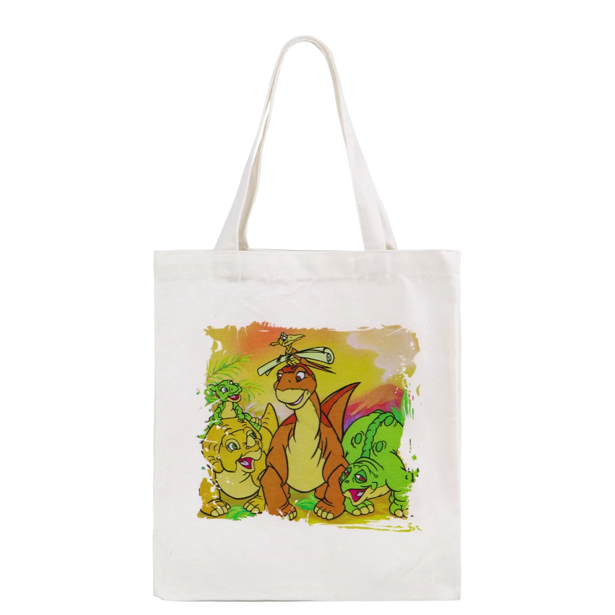 Bolso de mano de dinosaurio de dibujos animados, bolsos de hombro para mujer, bolso de compras Vintage, bolso de mano de lona informal de gran capacidad