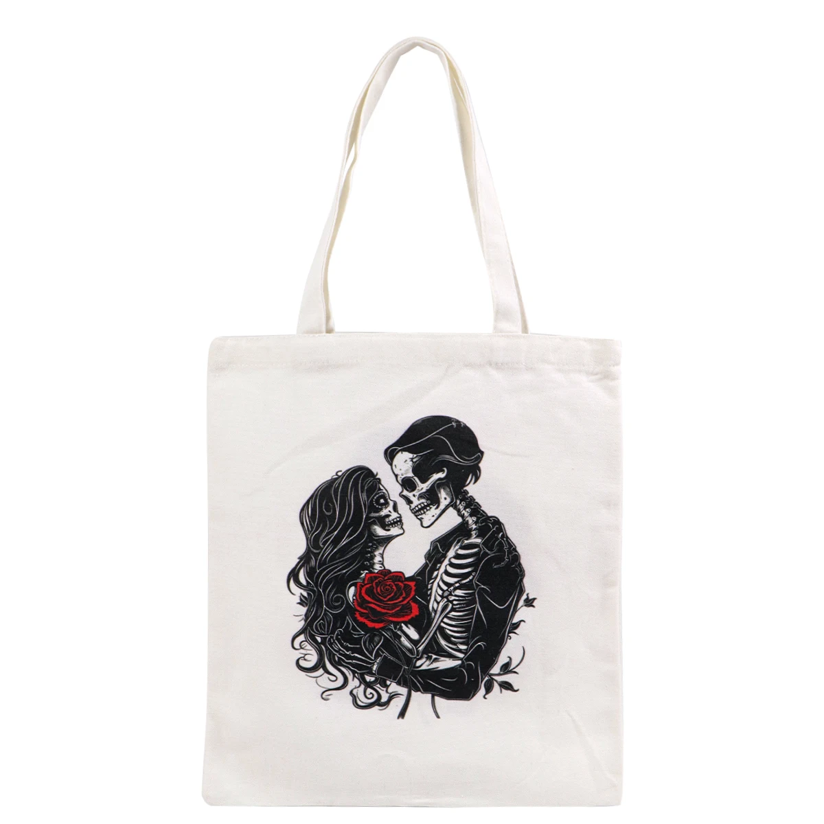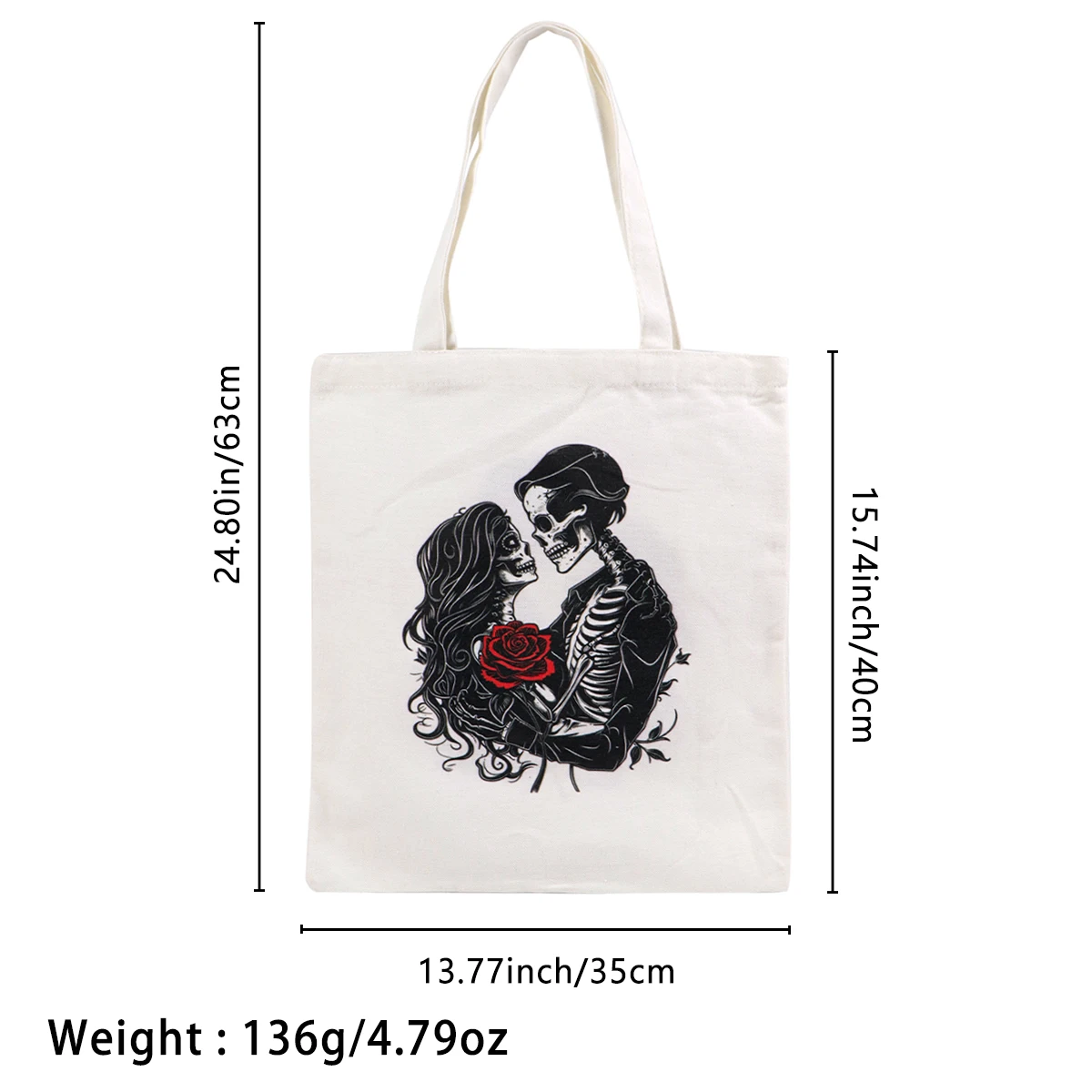 Bolso de mano con esqueleto, bolsos de hombro para mujer, bolso de compras Vintage, bolso de mano de lona informal de gran capacidad