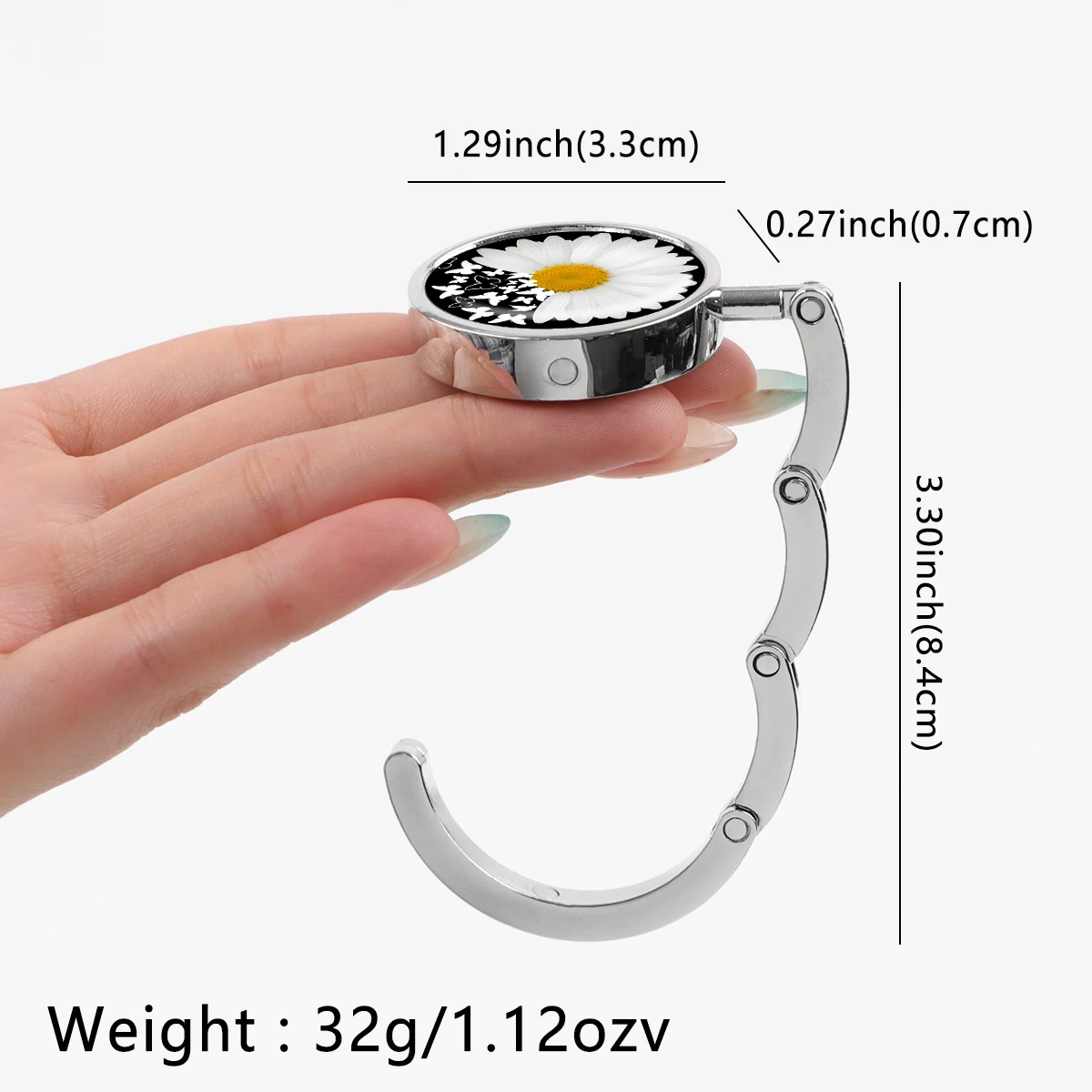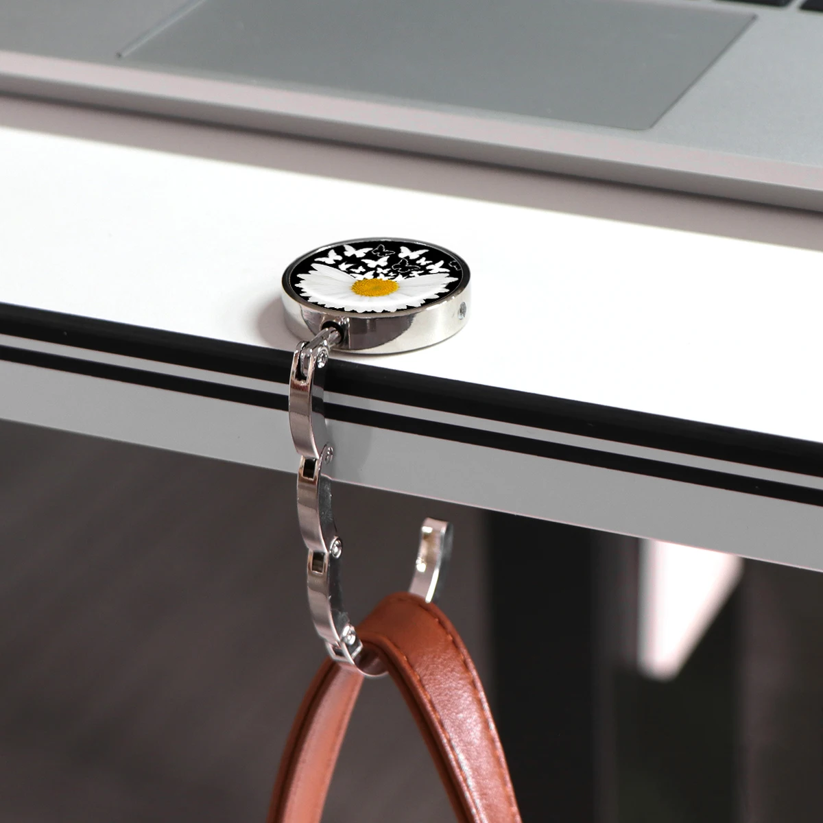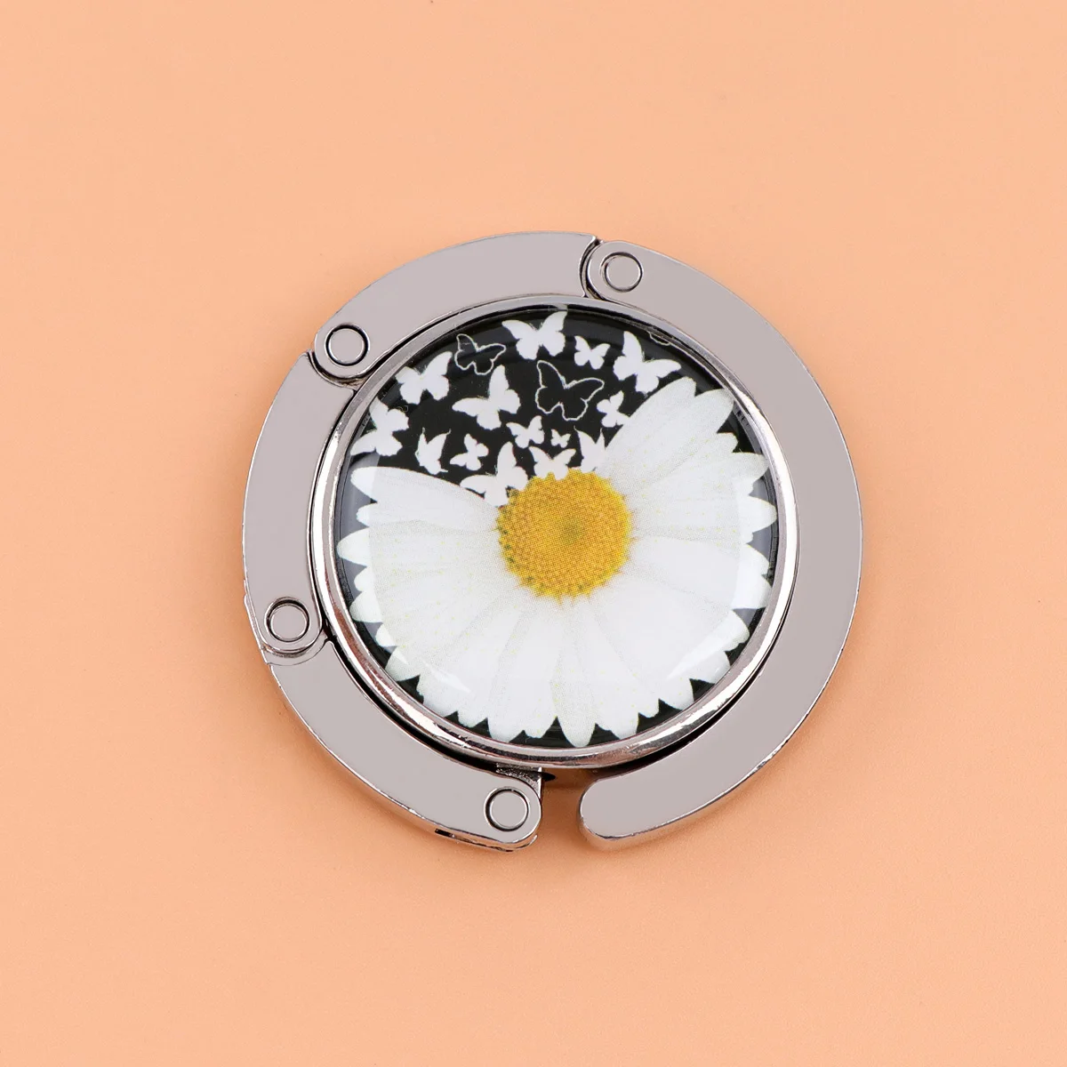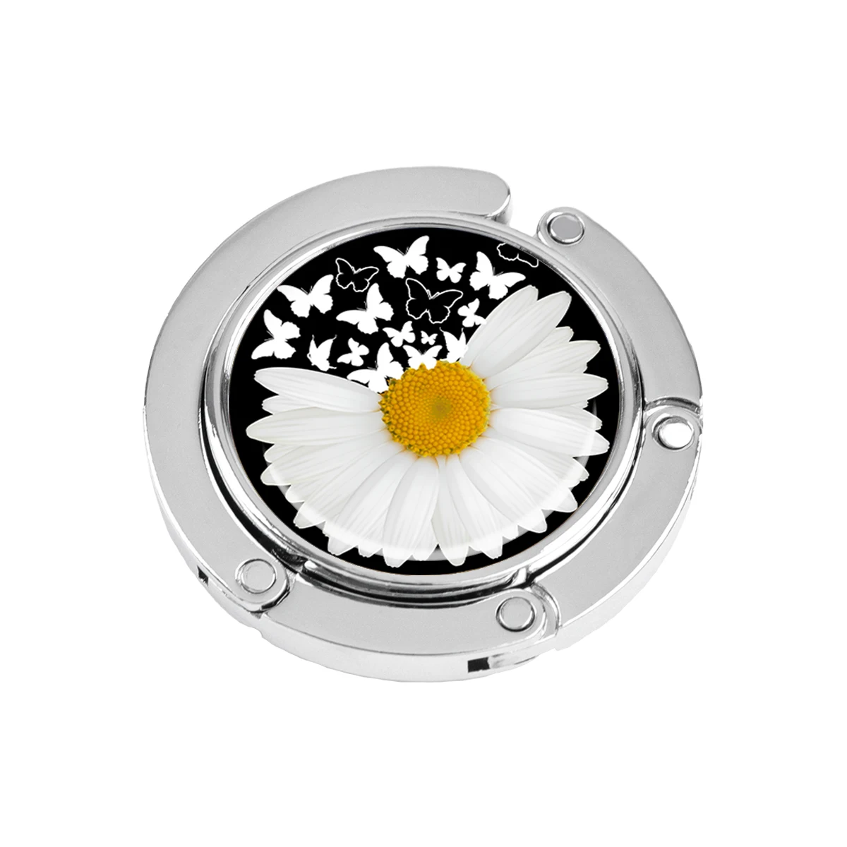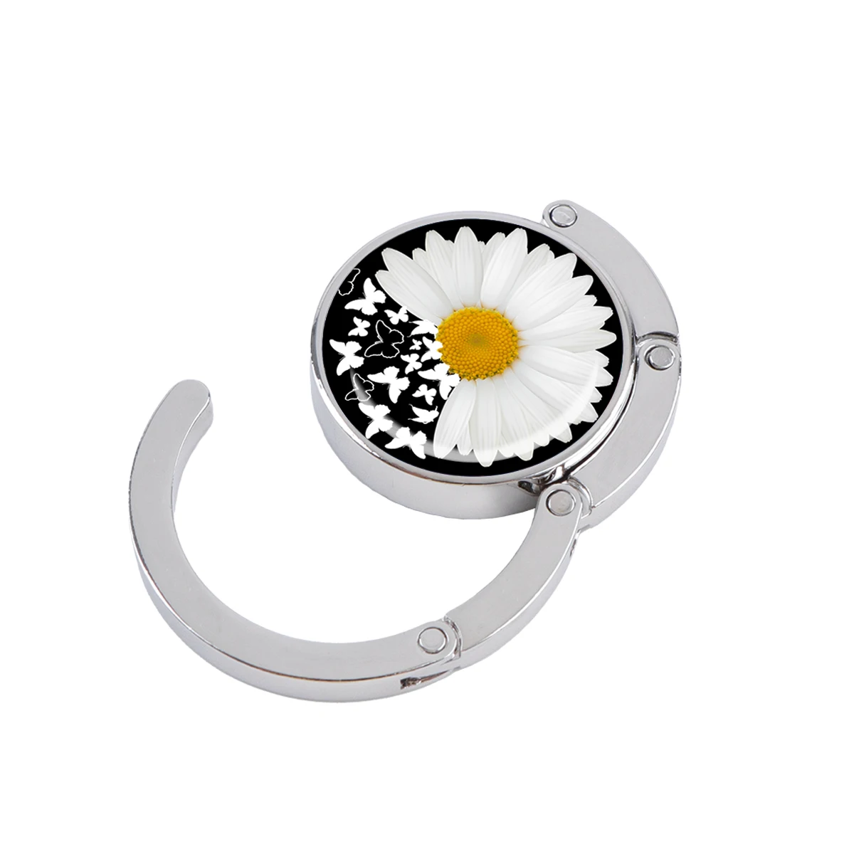 Bolso de mano con flores de Margarita, gancho plegable para bolso, colgador de mesa, piezas, soporte de accesorios para bolsa de mesa