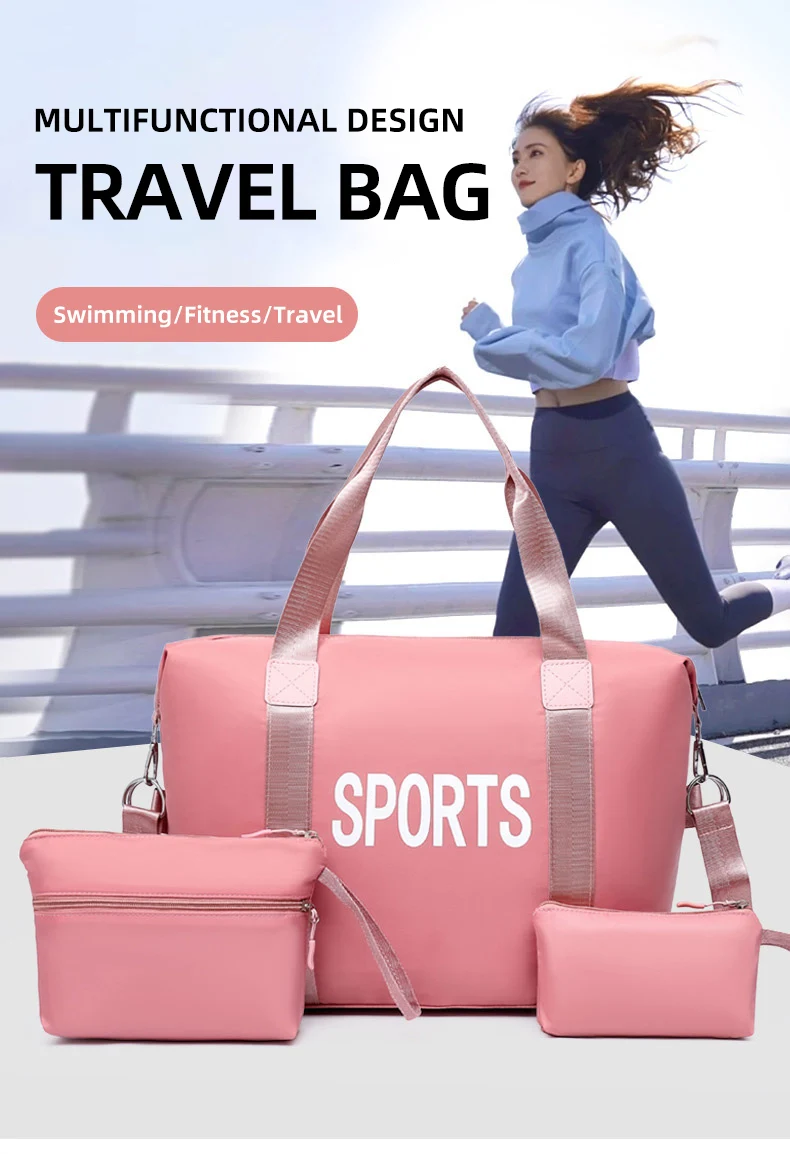 Bolso grande de ocio para Fitness, bolso de Yoga para mujer, 3 unids/set, seco y húmedo, viaje, natación, al aire libre, bandolera de un solo hombro