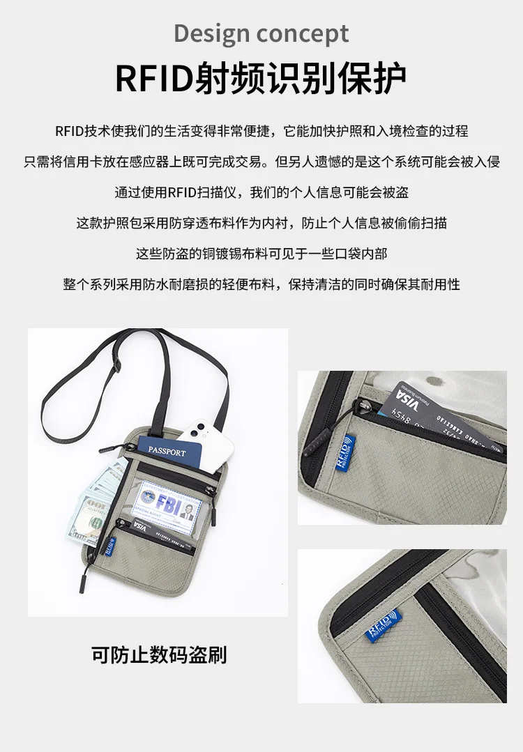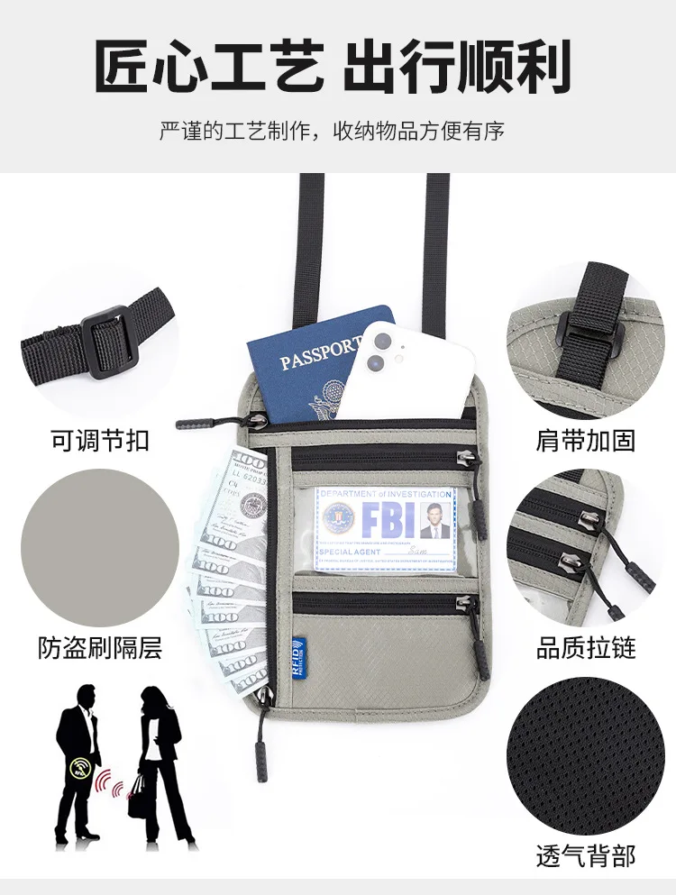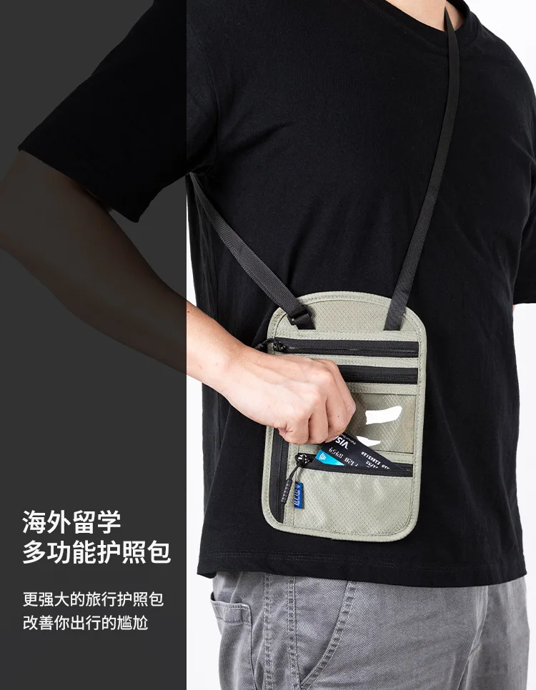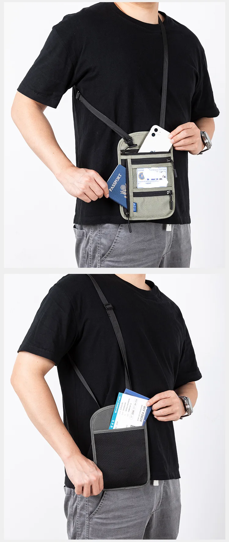 Bolso para pasaporte con cuello multifuncional, bandolera, bolsa de almacenamiento de un solo hombro, funda protectora para documentos y billetes, 180 horas sin visa