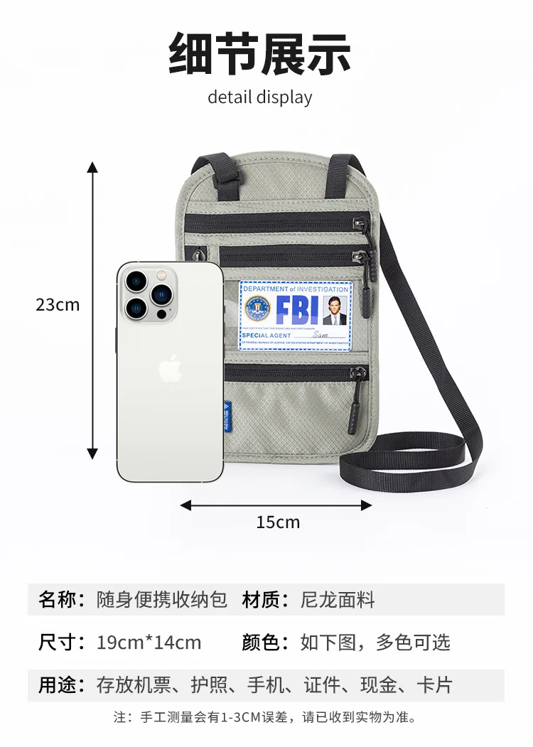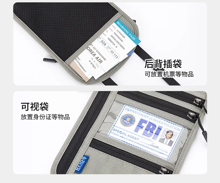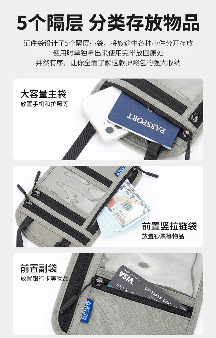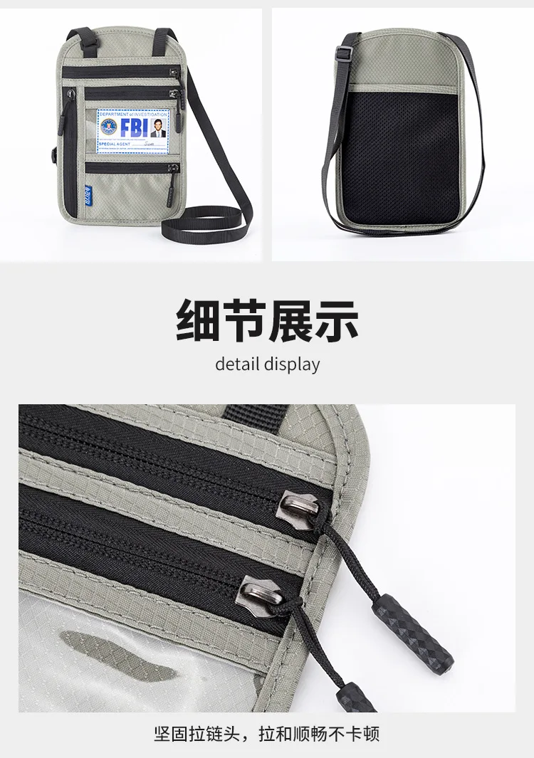 Bolso para pasaporte con cuello multifuncional, bandolera, bolsa de almacenamiento de un solo hombro, funda protectora para documentos y billetes, 180 horas sin visa