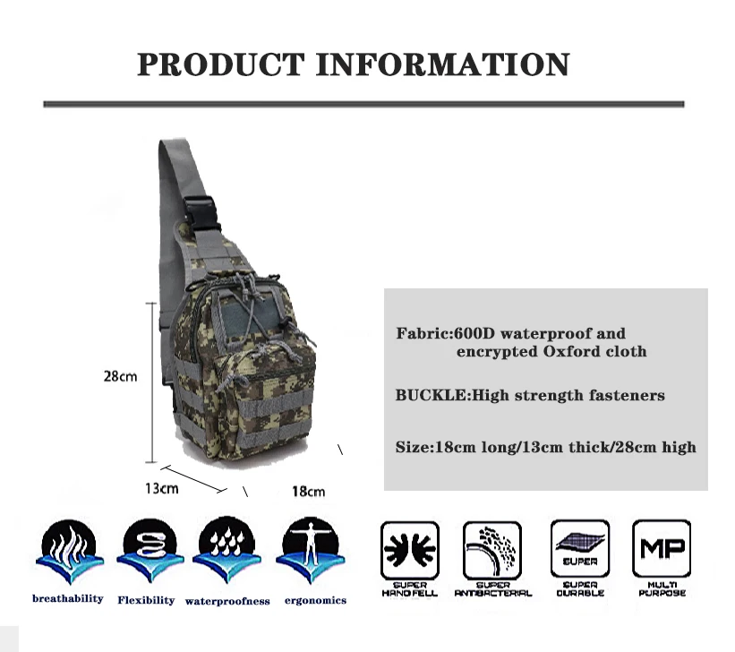 Bolso de pecho para exteriores para hombre, bolso de hombro de camuflaje, mochila con tirantes, Oxford 900D, montañismo, Camping, pesca, senderismo