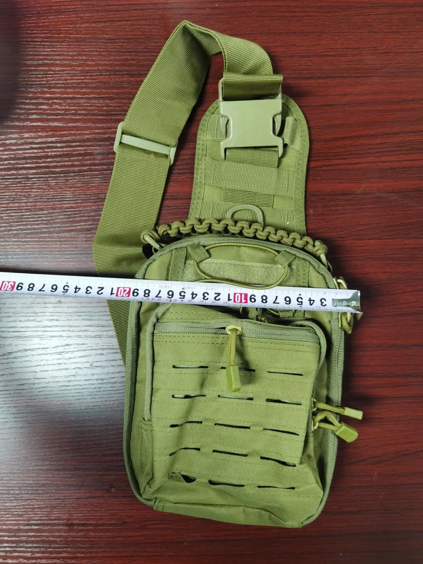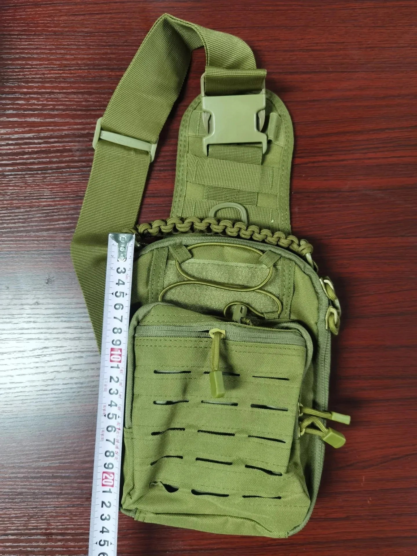 Cómodo de llevar, ajusta fácilmente la longitud de la correa. Ya ha reemplazado el primero que tenía en el pecho en color acu digital. Es mejor cosido aquí; se alejaron de este material pseudo impermeable similar a la goma que se desmorona con el tiempo y gotea cuando está mojado. Este está forrado por dentro con un acolchado delgado similar a Gore-Tex, como en las mochilas grandes. En resumen, espero que dure más de 2 ciclos de temporadas de años...