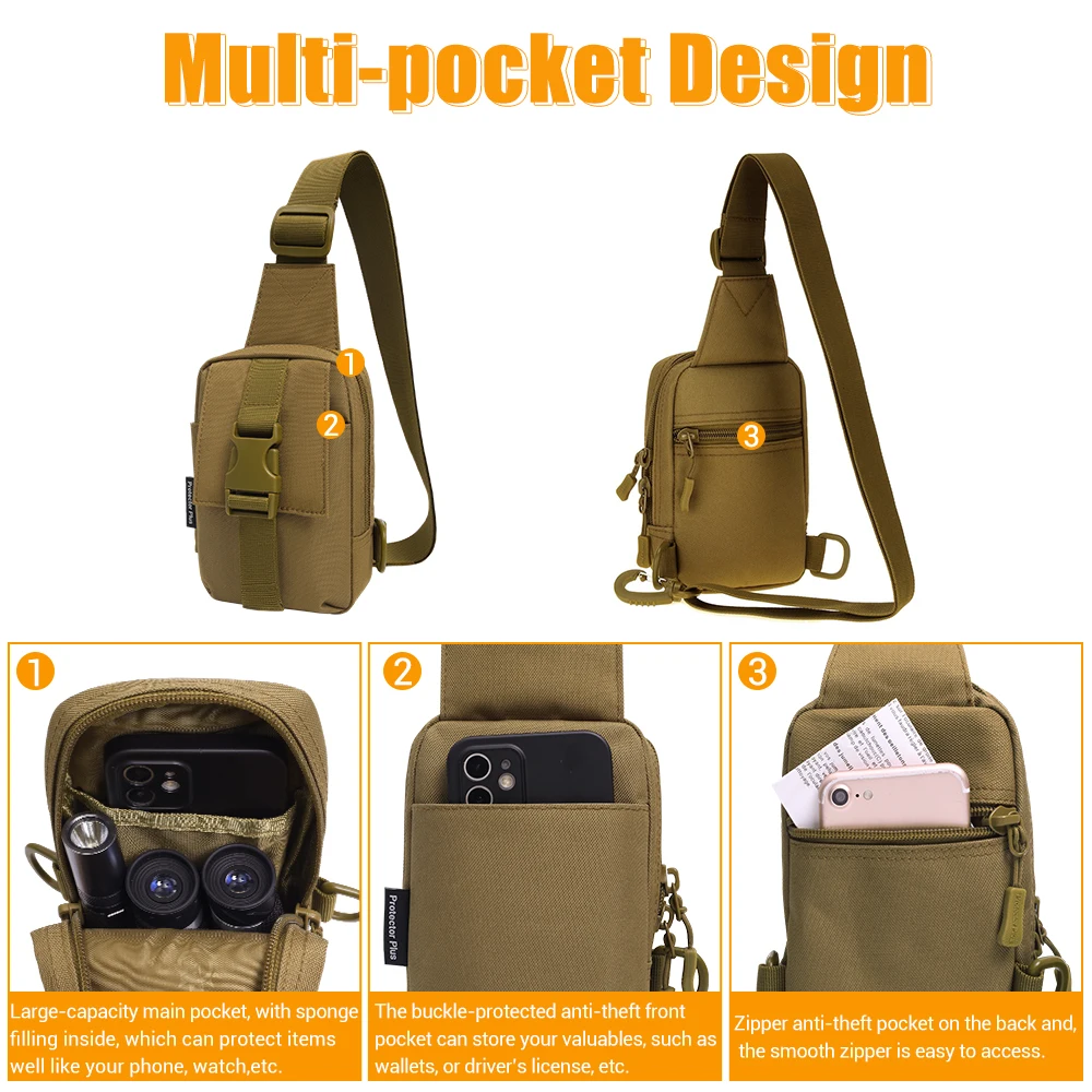 Bolsa de pecho táctica para exteriores, paquete de senderismo, bolsa deportiva EDC, bolsa de hombro, paquete cruzado, bolsa de asalto para senderismo, ciclismo, Camping