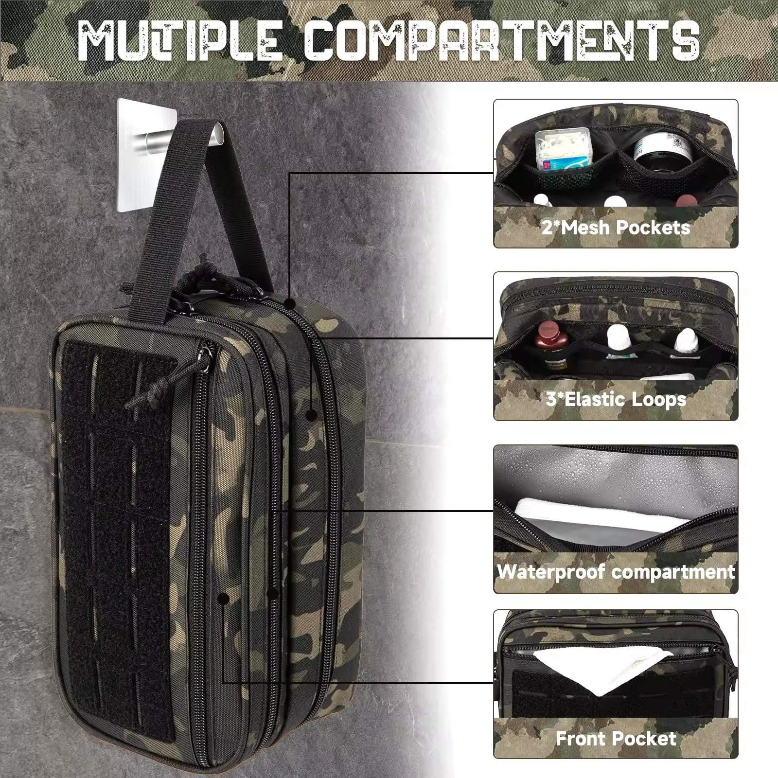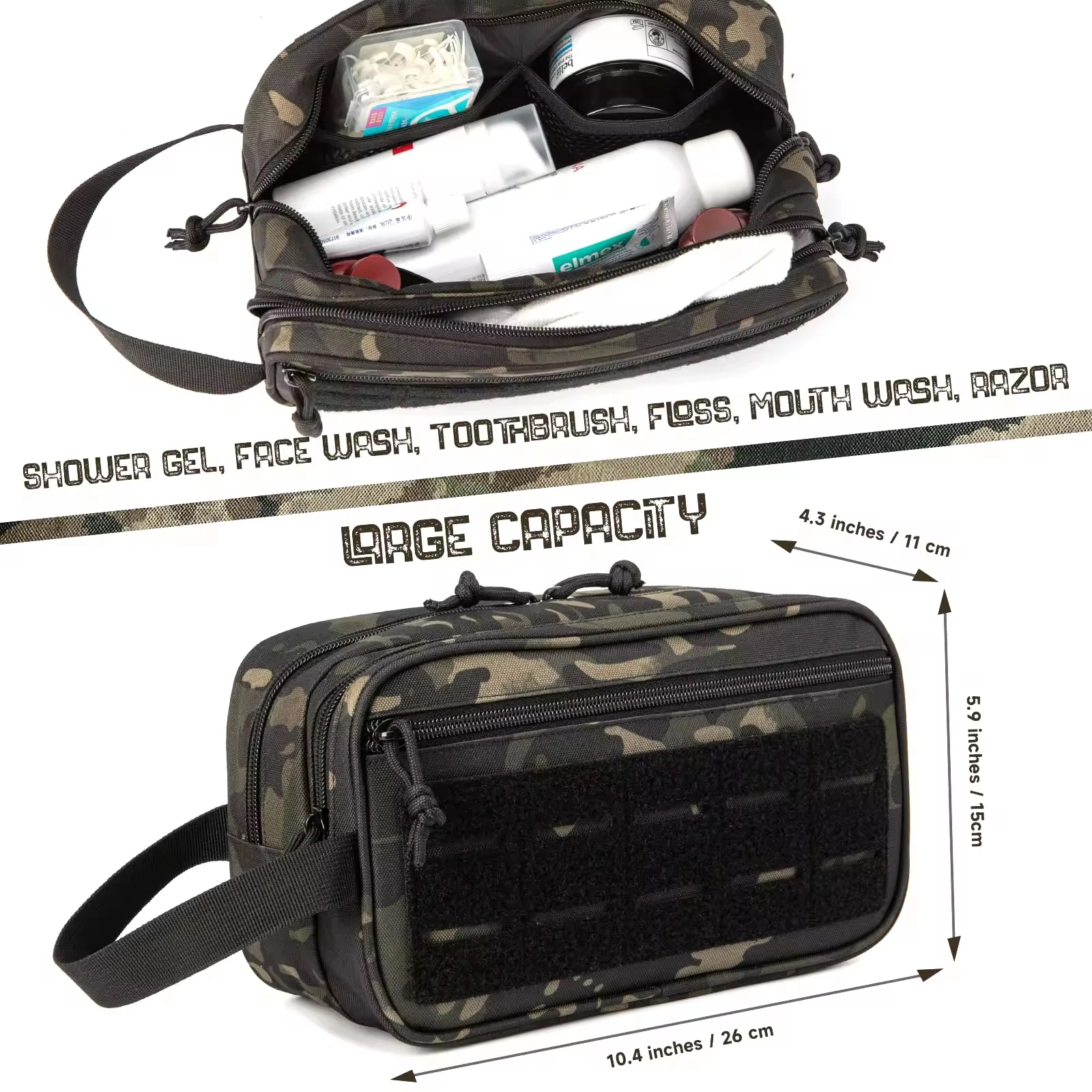 Perfecta para cualquier ocasión: ya sea que esté de viaje, acampando, en el gimnasio o necesite un lugar para guardar sus herramientas o medicamentos, esta bolsa de baño táctica es liviana y versátil, lo que la convierte en la compañera perfecta para cualquier aventura.