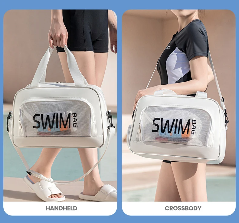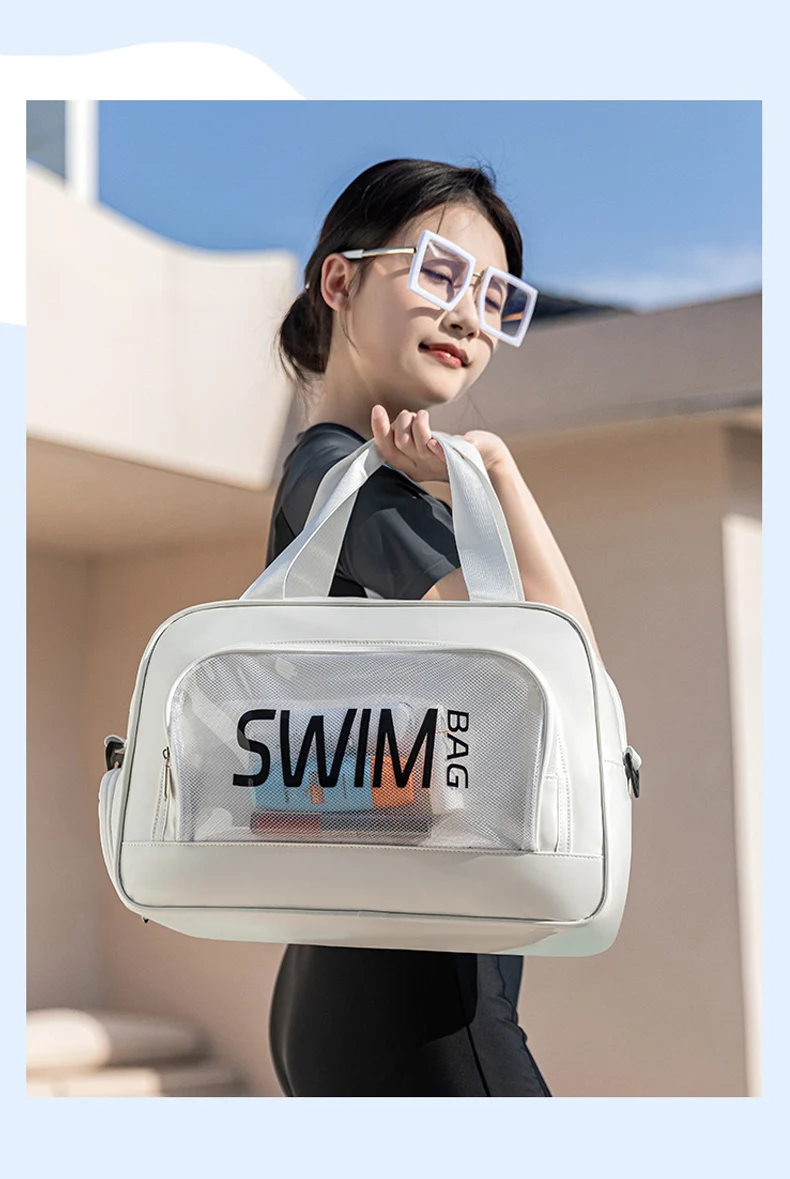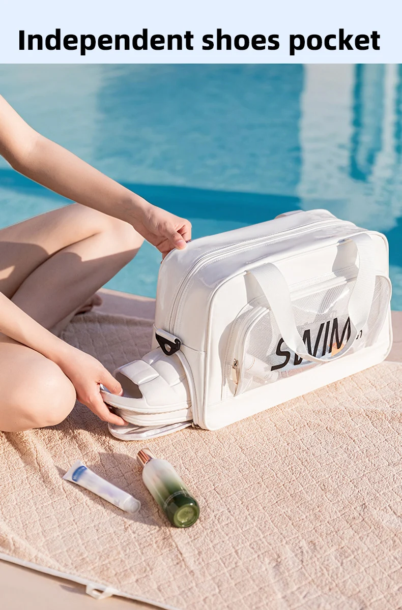 Bolso de playa para natación con bolsillo para zapatos, bolso grande para viajes, deportes, lavado, bolso cruzado, seco, húmedo, transparente, bolsas de corta distancia