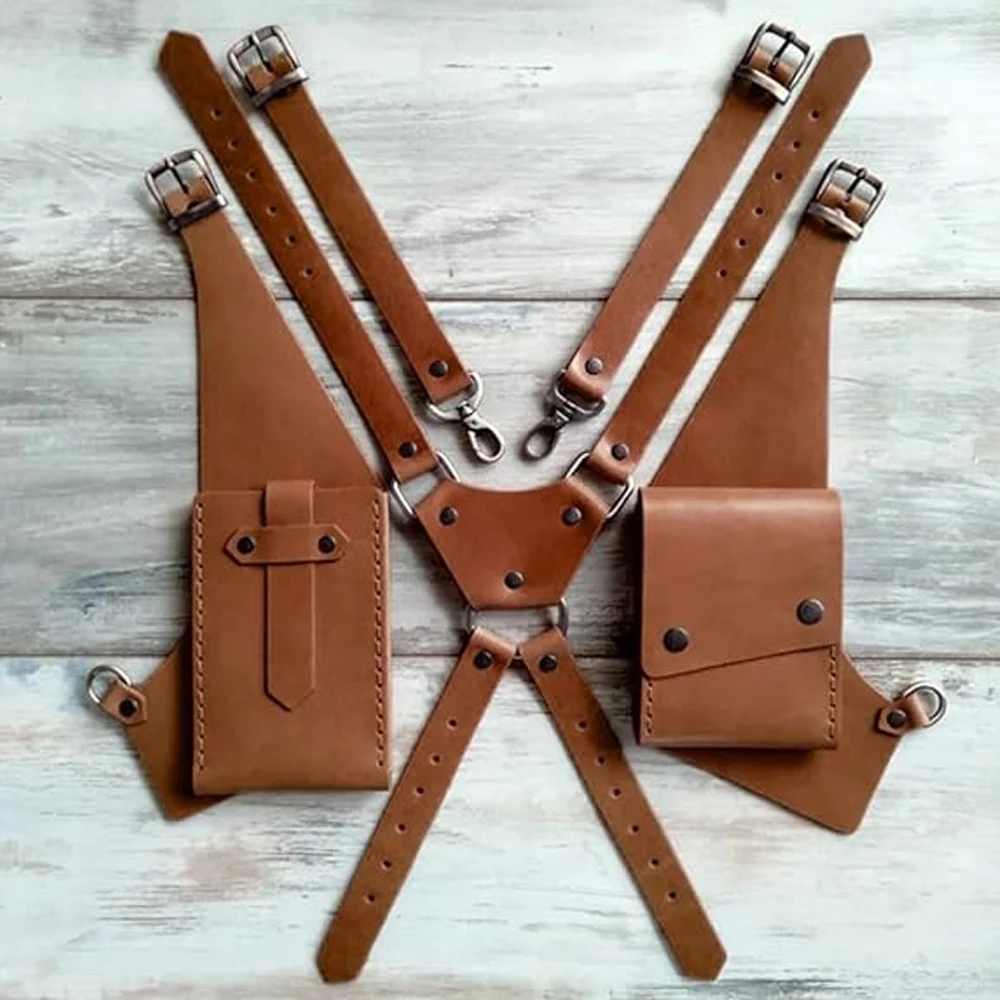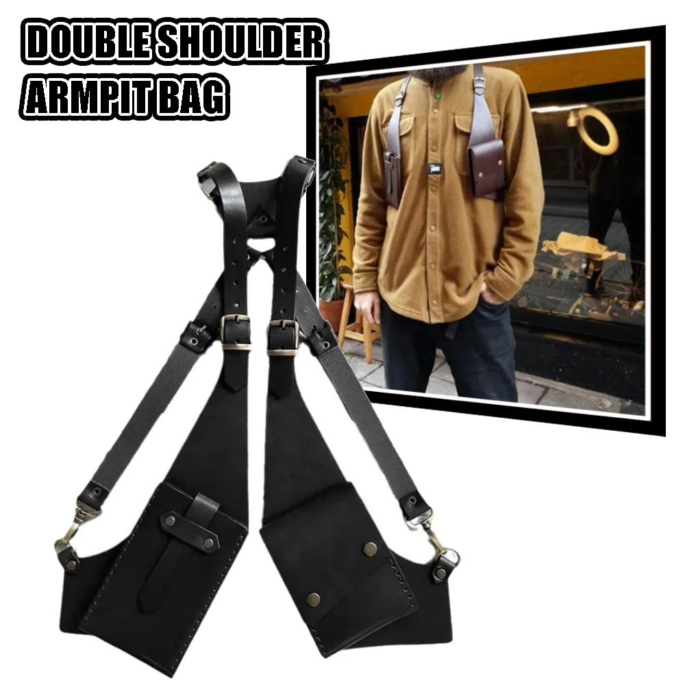 Bolso Steampunk de doble hombro para axila, bolso Retro desmontable de cuero PU para axila, bolsillo Retro de cuero, funda para teléfono, monedero