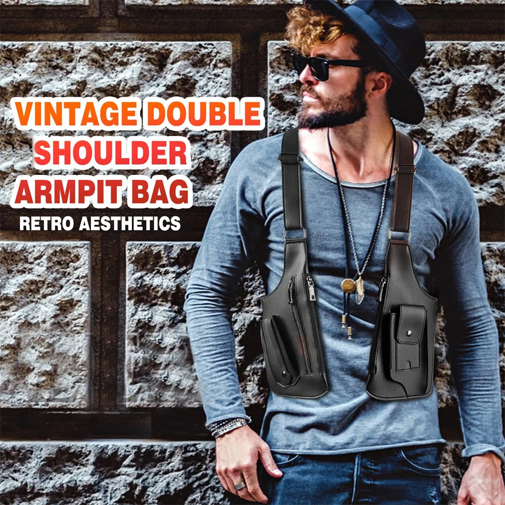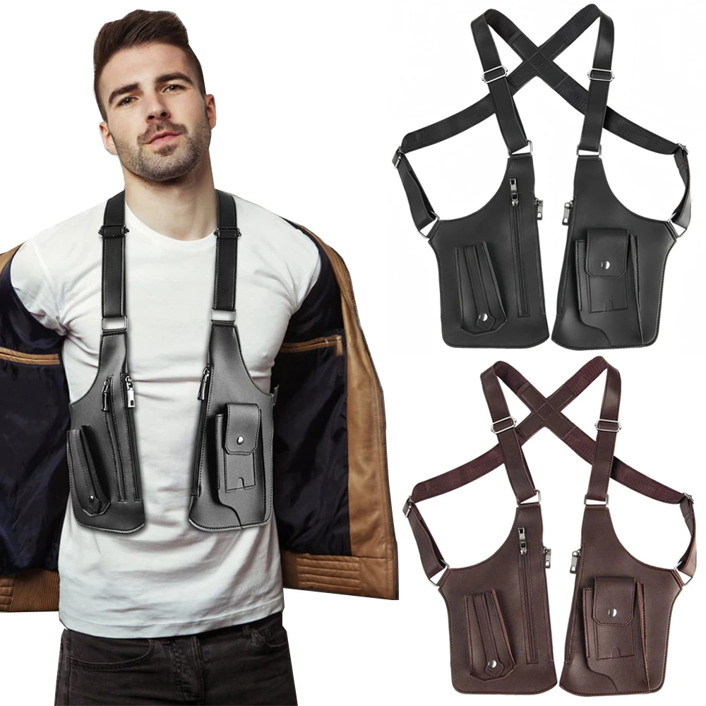 Bolso de hombro táctico para axila, chaleco de pecho, bolsa de cuero PU para teléfono, bolsa oculta antirrobo para teléfono, funda con correa ajustable
