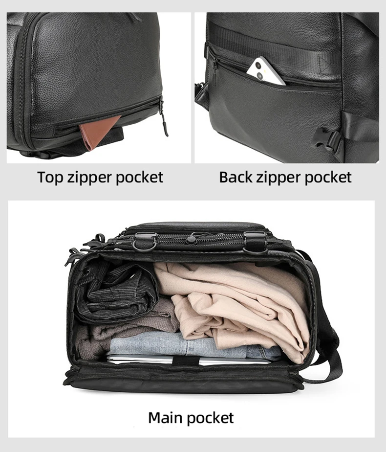 1.Diseño de compartimento principal de gran capacidad, puede guardar ropa y otros artículos portátiles, bolso cruzado, correas internas para computadora portátil, puede colocar dispositivos electrónicos de forma segura y estable