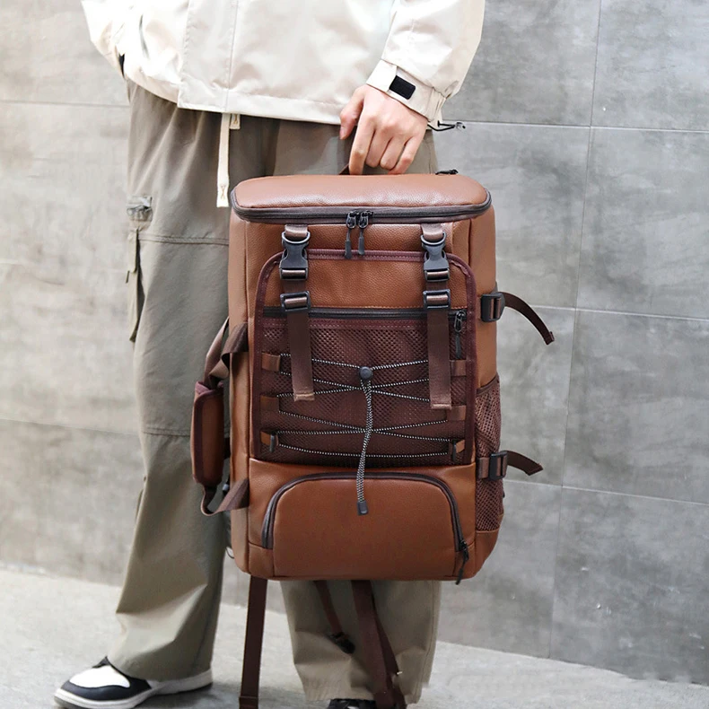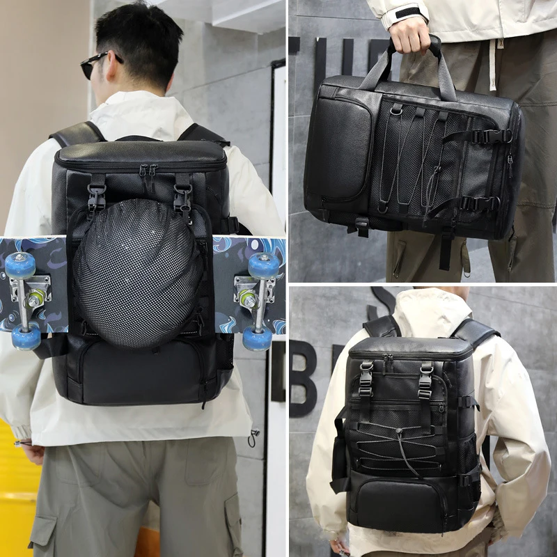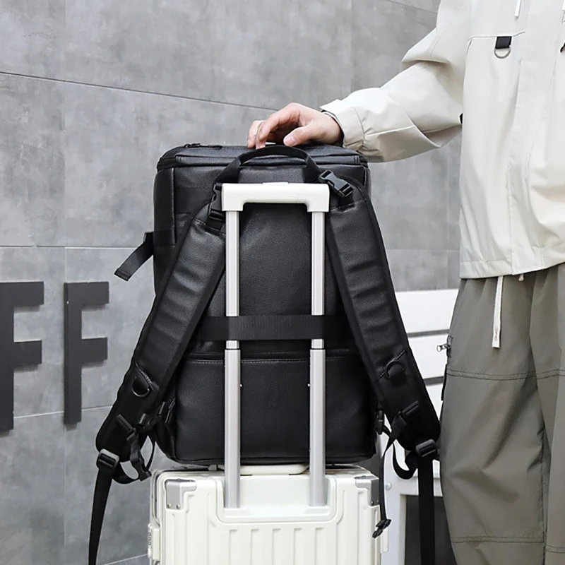 Mochila versátil de piel sintética para hombres y mujeres: correas ajustables con correa para computadora portátil, perfecta para negocios, informal, viajes y gimnasio.
