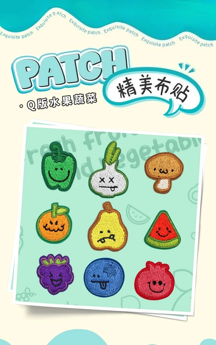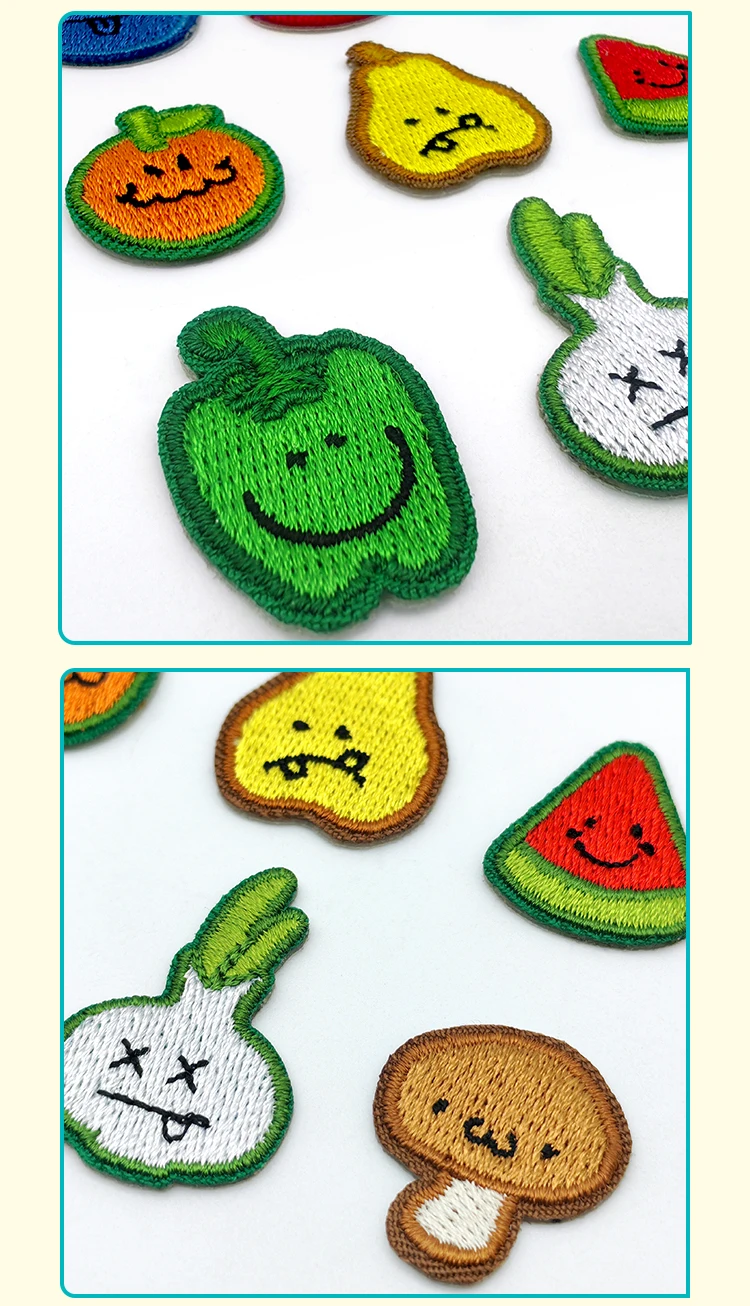 Bonitos parches de frutas y verduras bordados, sandía, arándanos, brócoli, uvas, decoración de fiesta, insignia para ropa