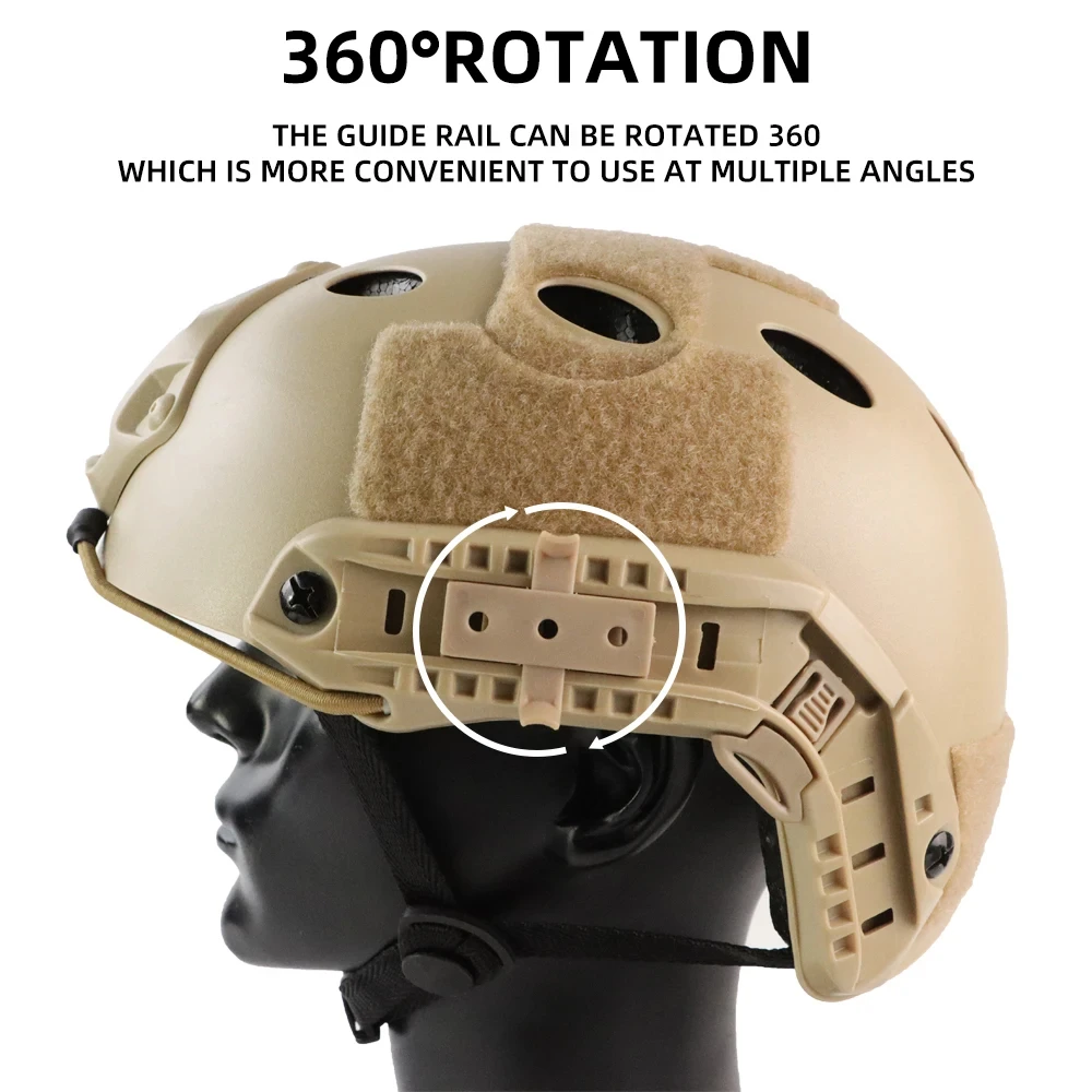 [Aplicación]: Con el soporte de riel en su casco, puede colocar la linterna, la luz, la cámara y otros en su casco.