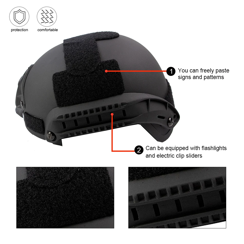 【GRAN CASCO MULTIFUNCIONAL】: los rieles laterales se ajustan a una variedad de accesorios, integrados con la mayoría de los soportes de estilo NVG compatibles. Ideal para entrenamiento, búsqueda y rescate, aficionados, saltos, juegos de CS airsoft y paintball y otras actividades al aire libre.