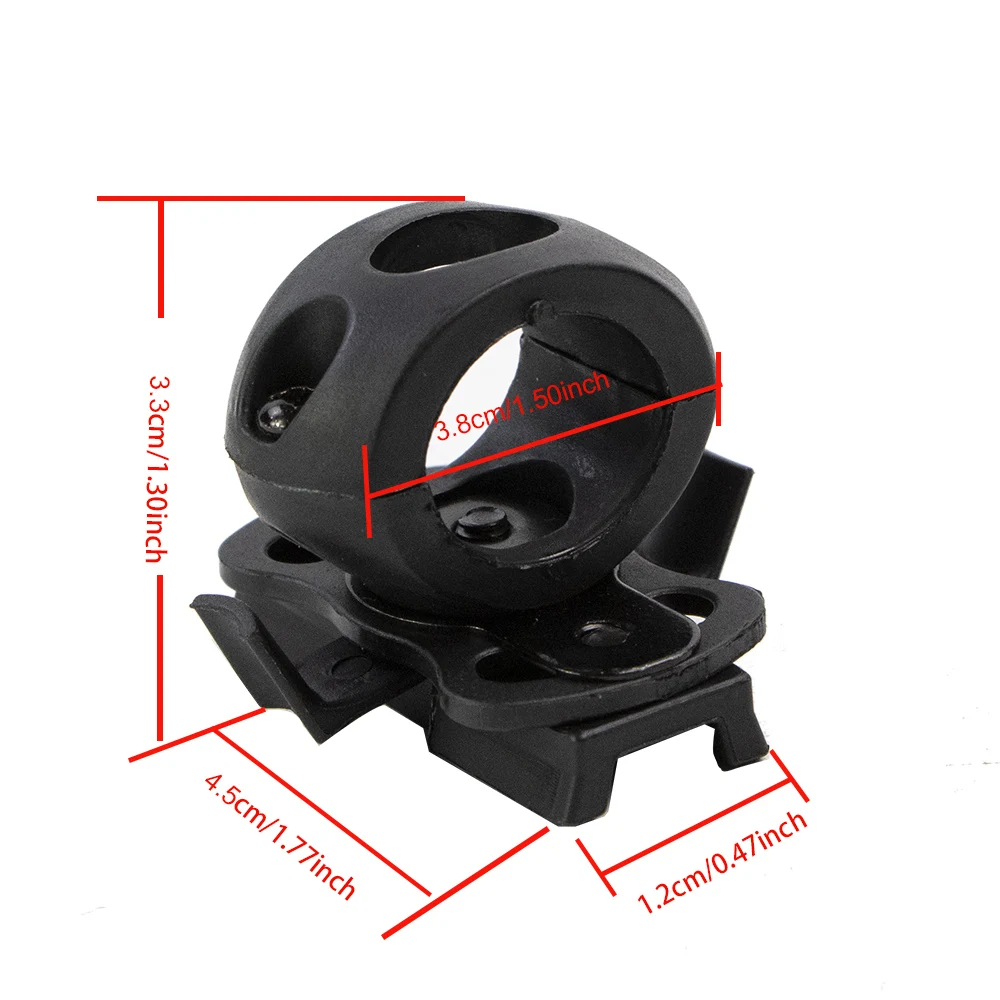 AJUSTE UNIVERSAL: El soporte para flash tiene un diámetro de 21 mm, adecuado para la mayoría de linternas de este tamaño.Este soporte es compatible con rieles para casco FAST, MICH e IBH.