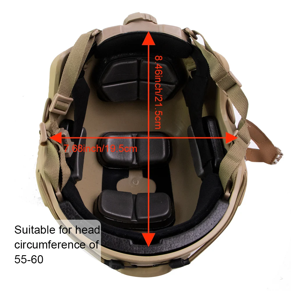 Forro ligero, multiimpacto y ventilado con almohadillas de impacto reposicionables y orificios para ventilación. El casco es un casco totalmente ajustable, perfecto para casi cualquier aplicación de Airsoft.El diseño liviano significa que se cansará menos al llevar un casco en la cabeza y aún conservará la misma cantidad de protección necesaria para actividades al aire libre.