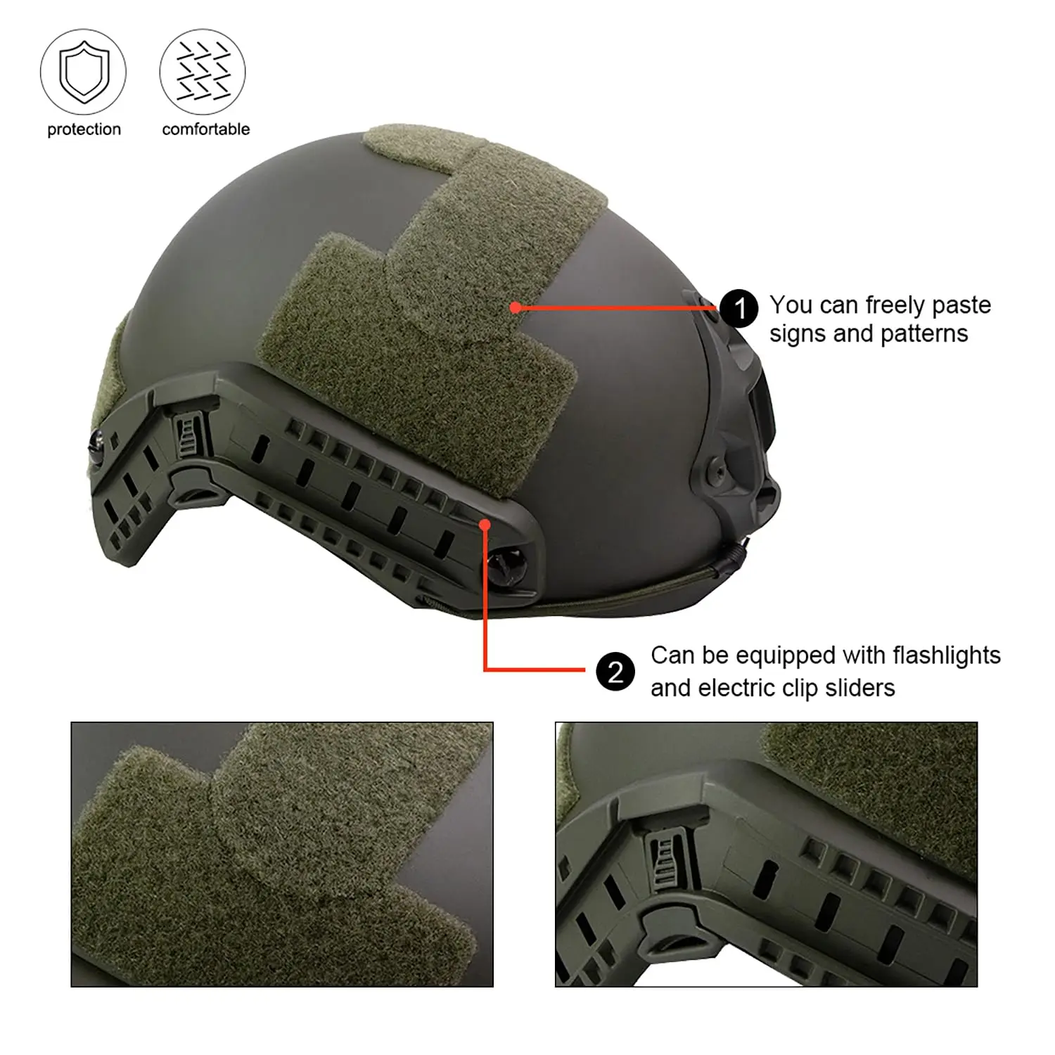 Ligero, multi-Impacto, forro ventilado con almohadillas de impacto reposicionables y agujeros para la ventilación, el casco es un casco totalmente ajustable perfecto para casi cualquier aplicación de Airsoft. El diseño ligero significa que se fatigará menos al llevar un casco en la cabeza y aún así conservará la misma cantidad de protección necesaria para las actividades al aire libre.
