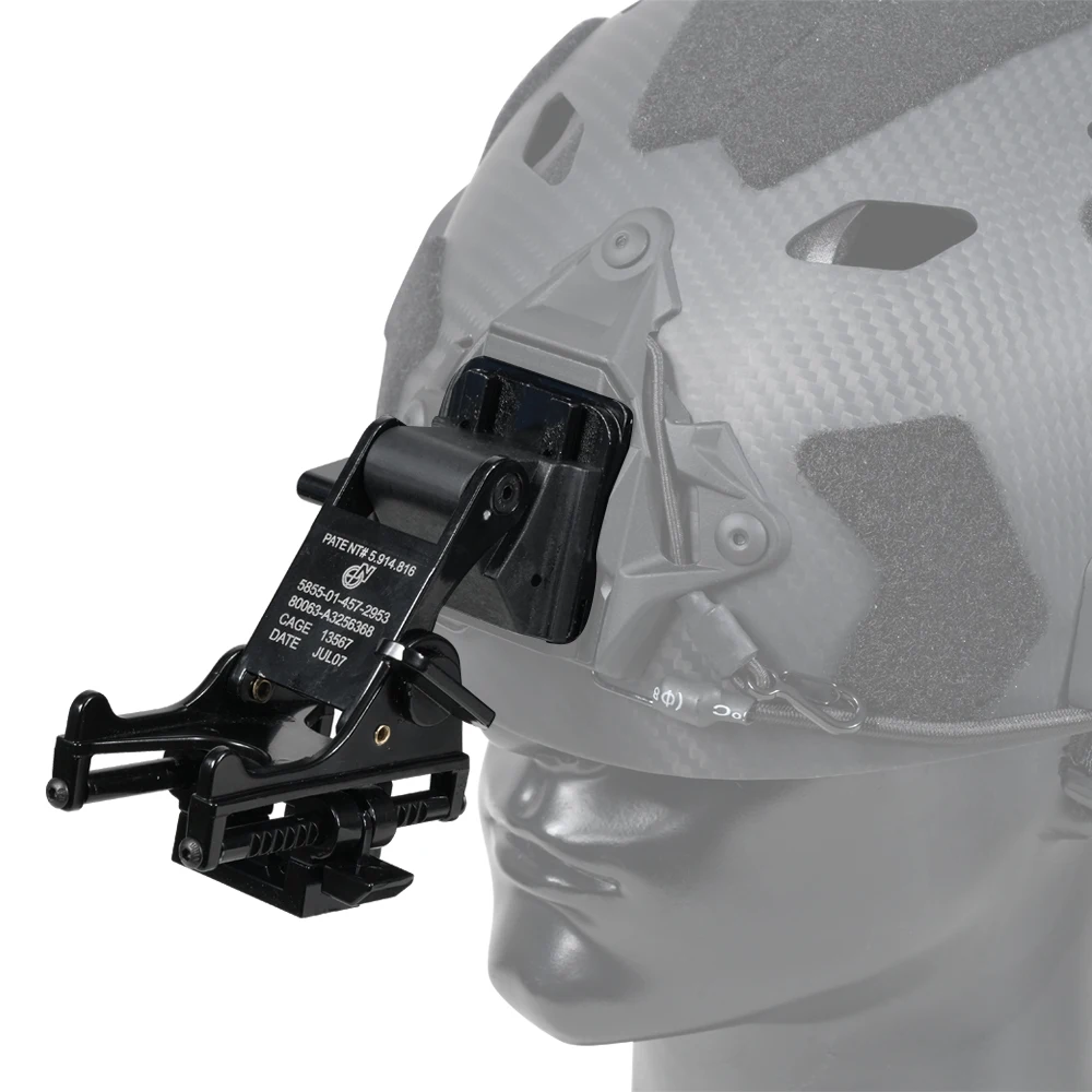 Con su diseño fácil de usar, este adaptador de montaje en casco simplifica el proceso de equipar gafas de visión nocturna durante misiones tácticas o juegos.