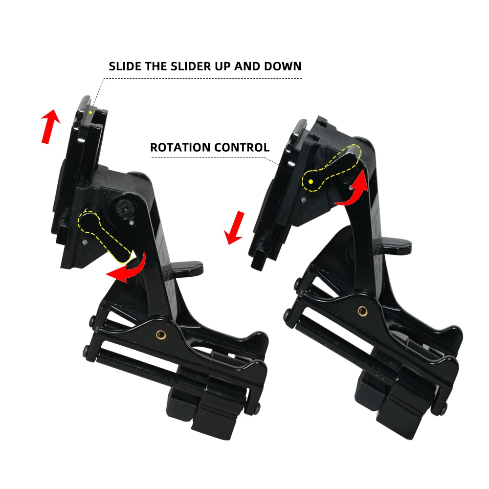 El bloque de conexión del casco puede deslizarse hacia arriba y hacia abajo, lo que lo hace cómodo de usar y ajustar rápidamente la posición del dispositivo de visión nocturna.