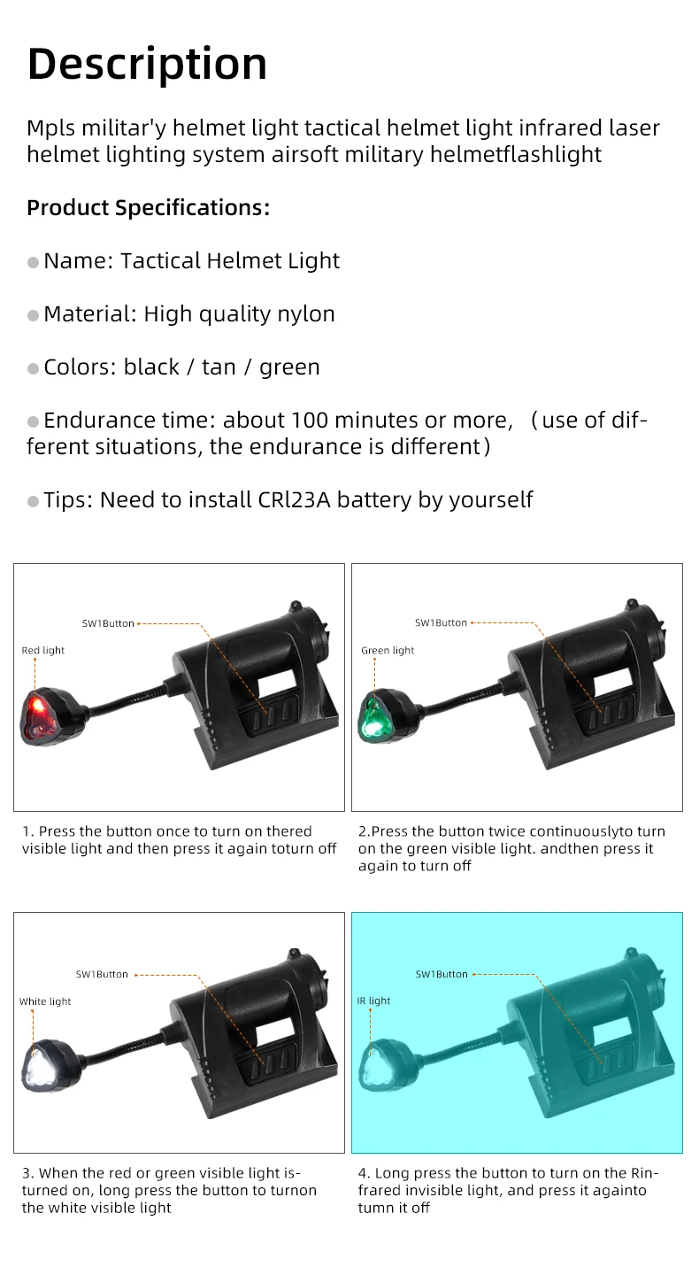 Fabricada con materiales de alta calidad, esta luz para casco está diseñada para durar, lo que garantiza un rendimiento confiable en cualquier entorno al aire libre.