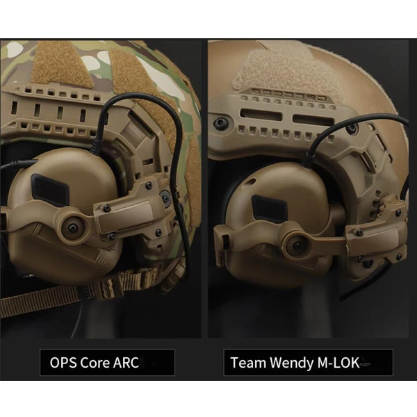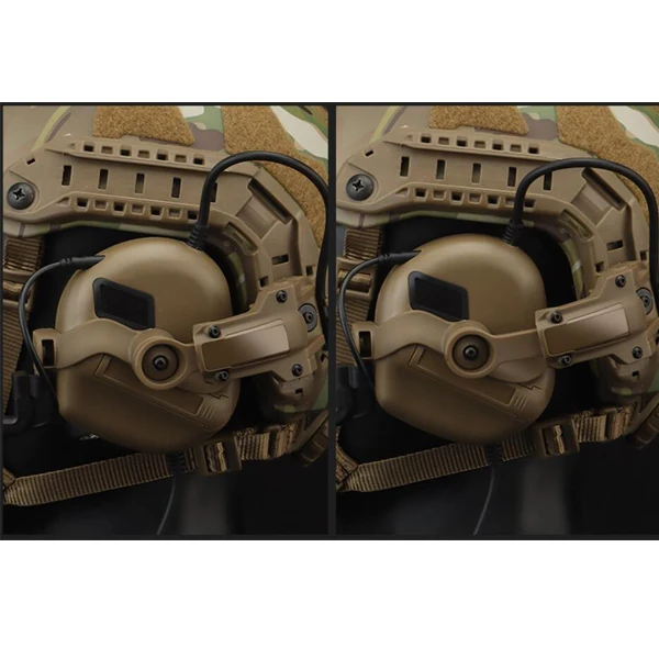 Los auriculares tácticos se instalan en el casco utilizando este producto.Cuando no esté en uso, los auriculares se pueden girar hacia la parte posterior del casco, lo que simplifica el método de almacenamiento y crea una apariencia muy discreta.