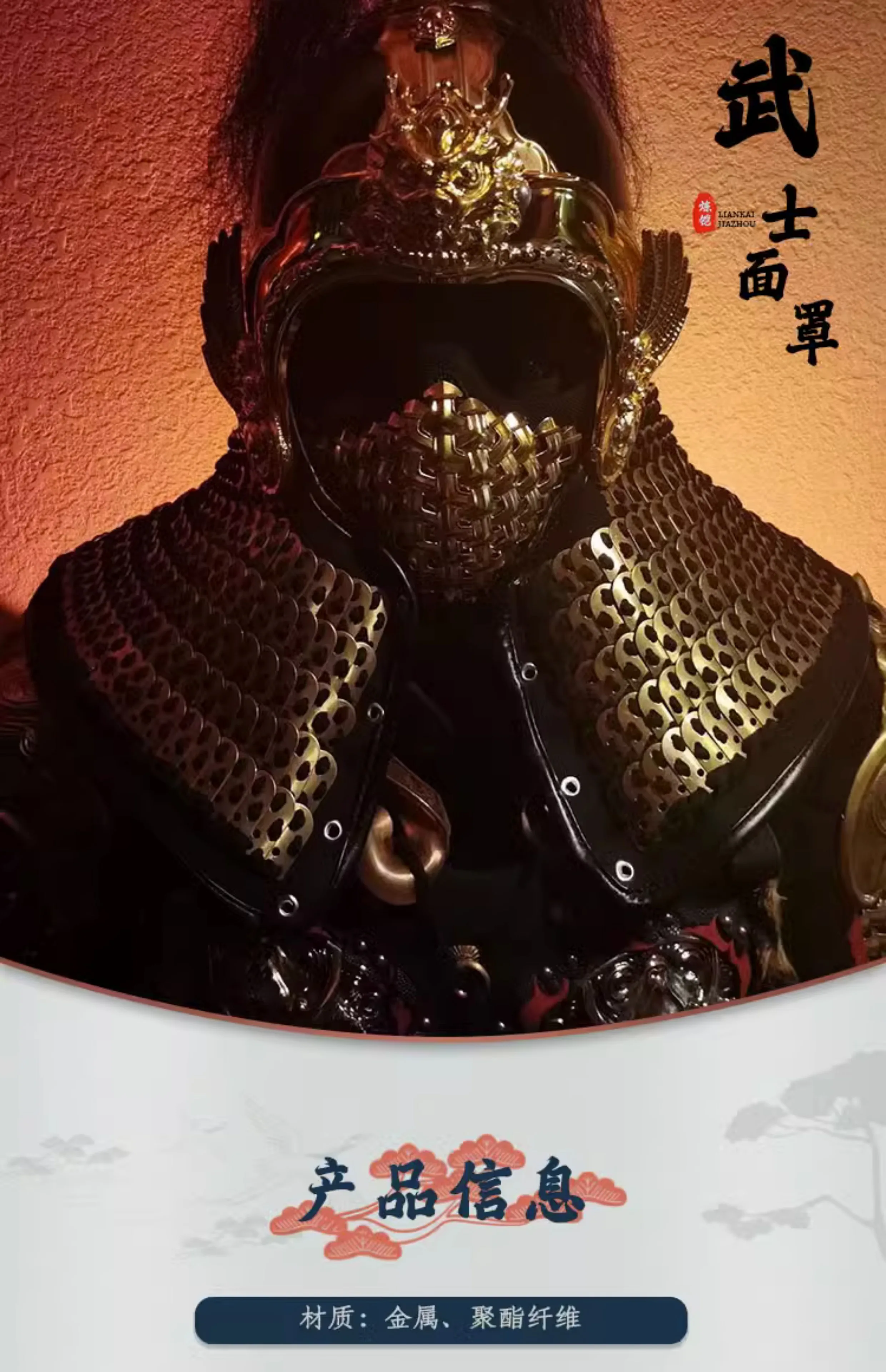 Boquilla de máscara samurái, accesorios de Cosplay Hanfu, armadura china, armadura bloqueada