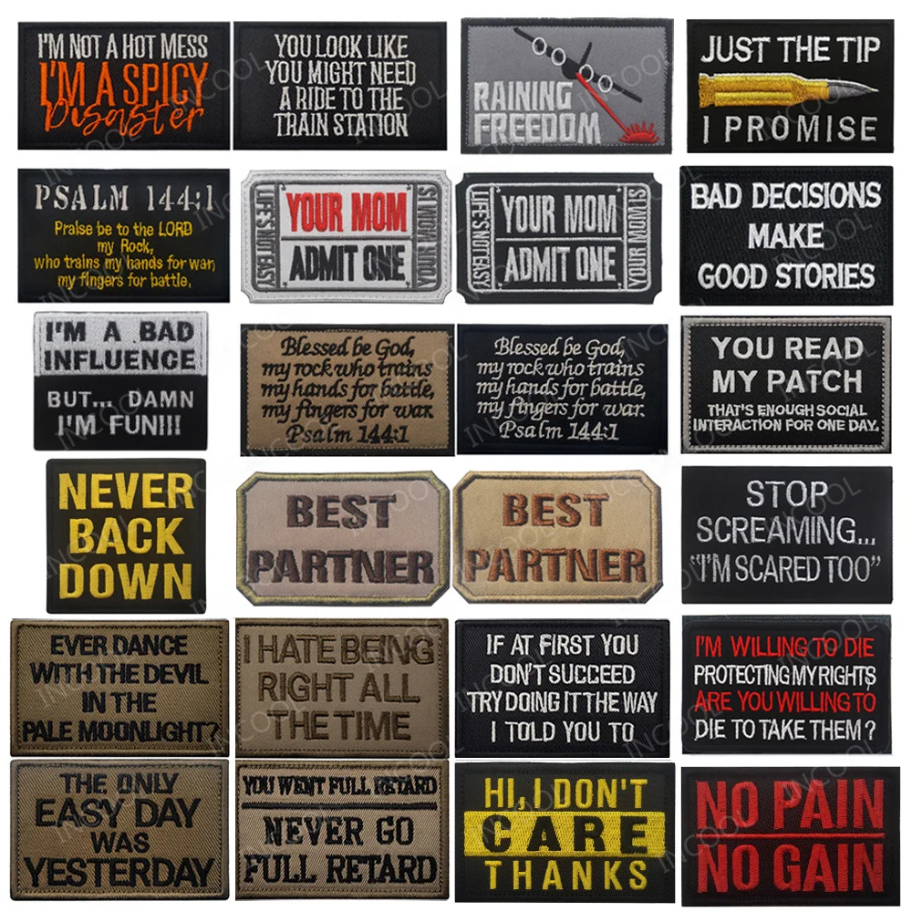 [Especificación]:Frases motivacionalesBordado alfabeto inglés divertido clásico diciendo parches eslogan palabras emblema apliques