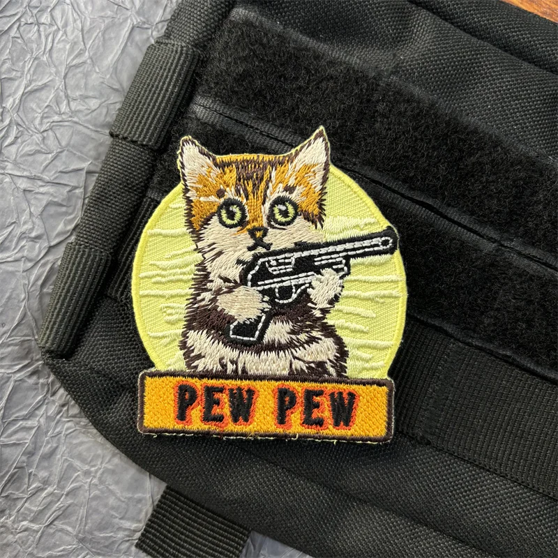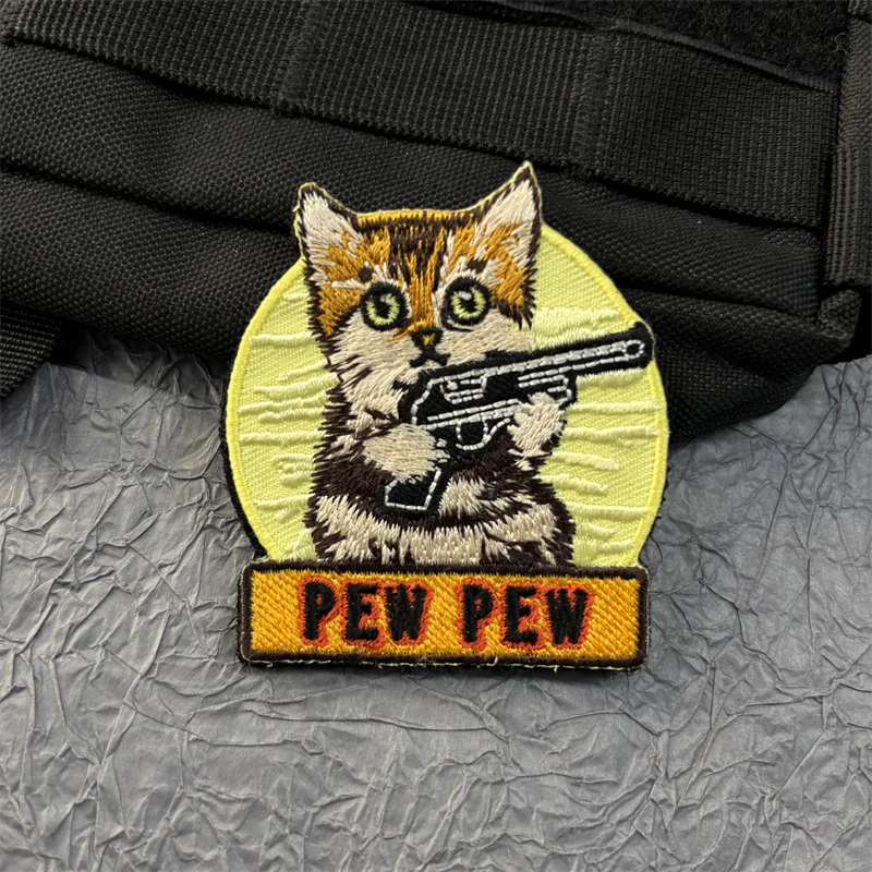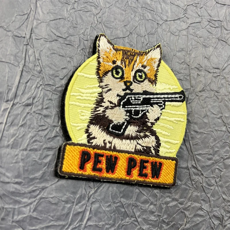Bordado de gato en ropa, insignia de moral Pew, parches de gancho y bucle, pegatinas para mochila, equipo táctico de dibujos animados