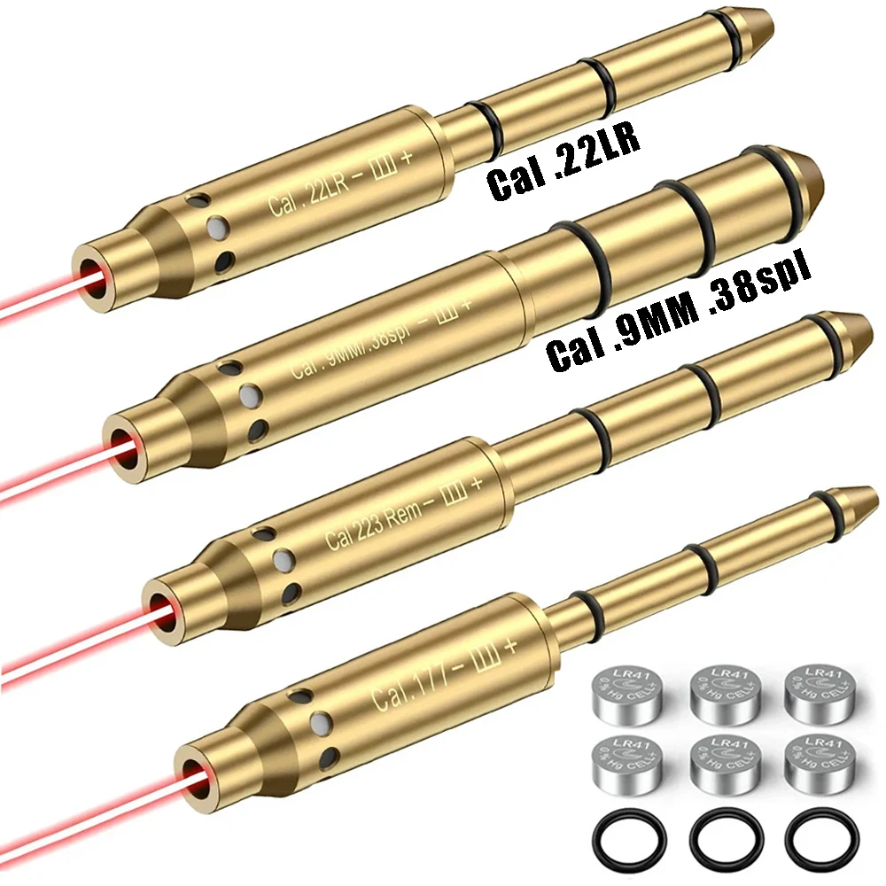 Boresighter de latón con láser rojo.177/.223Rem/22LR/9mm/.38spl/308Win Cal Barril de extremo de mira con orificio láser rojo para pistolas revolvers Rifle
