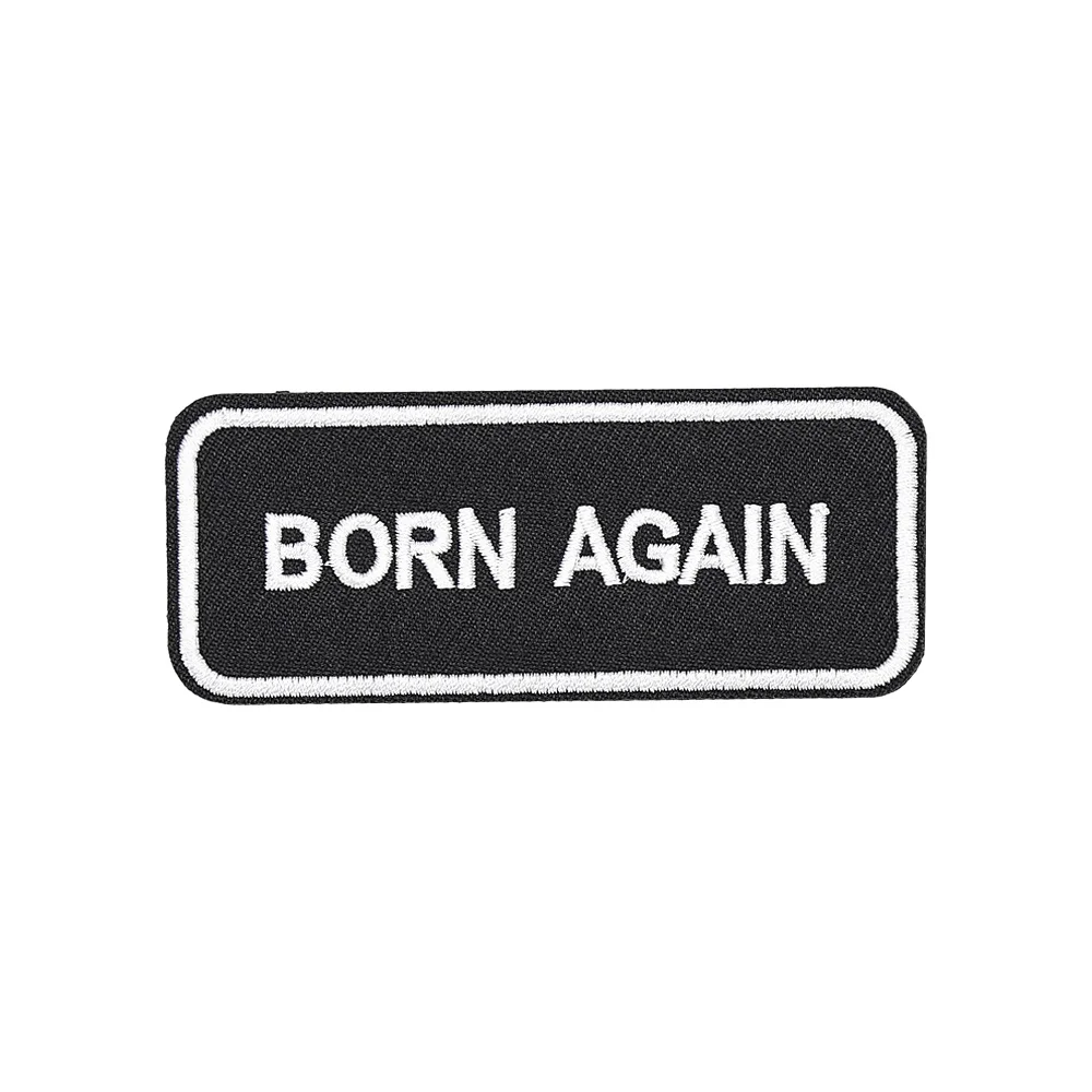 BORN AGAIN-Parche divertido de Velcros, Meme táctico, citas de moral, insignia de sujeción con gancho bordado para gorra vaquera, mochila Molle