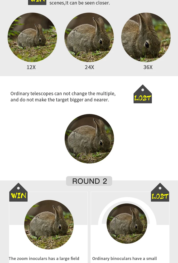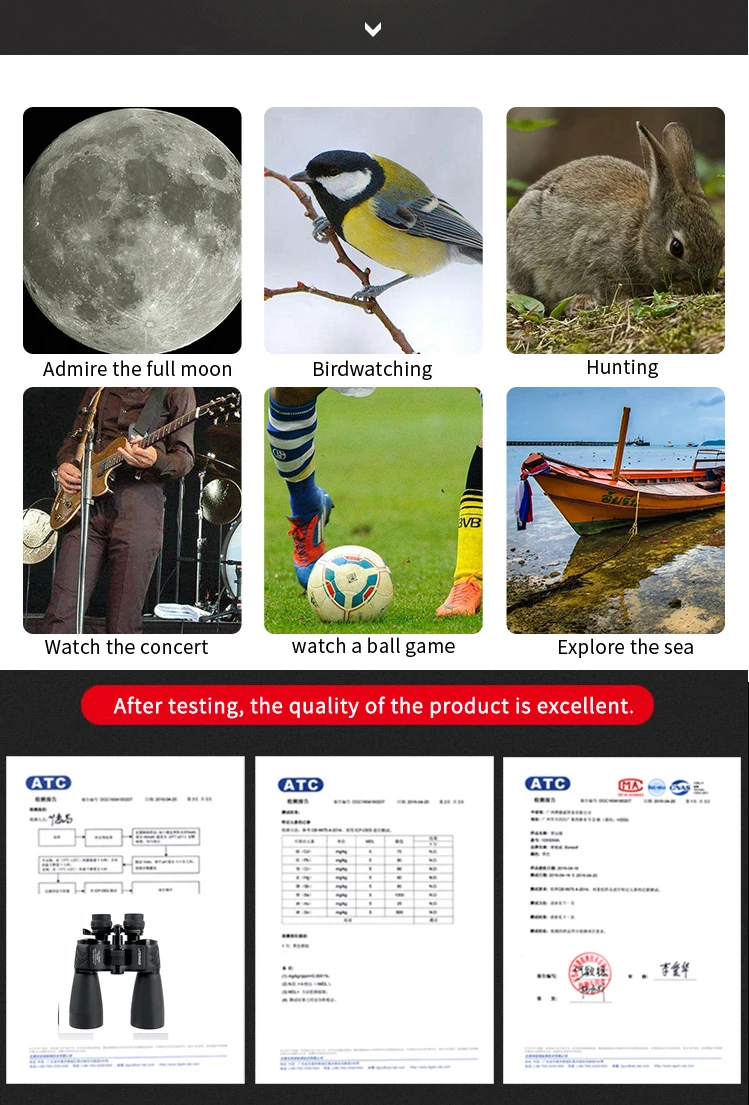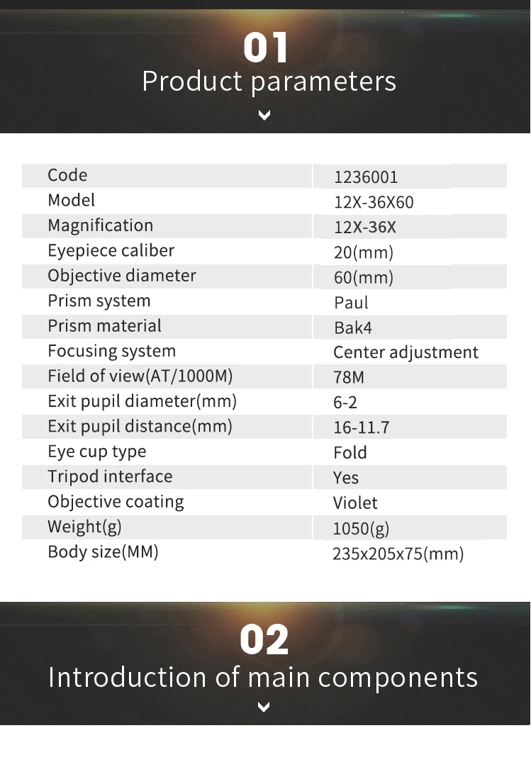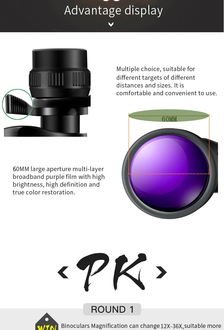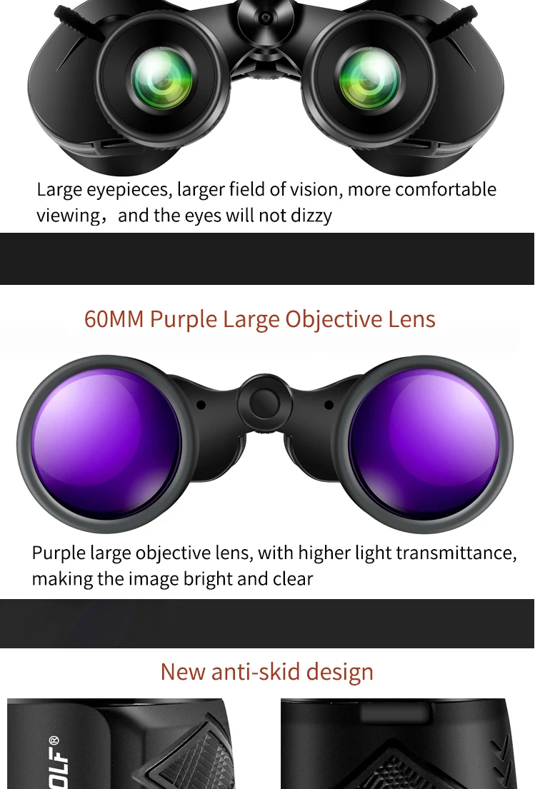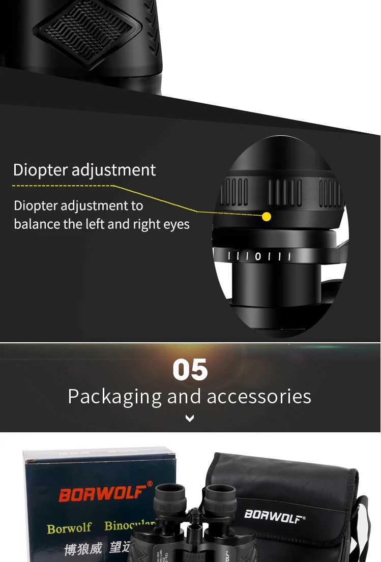 Borwolf 12-36X60 Binoculares potentes Gafas de campo con zoom Gran telescopio de mano para observación de aves