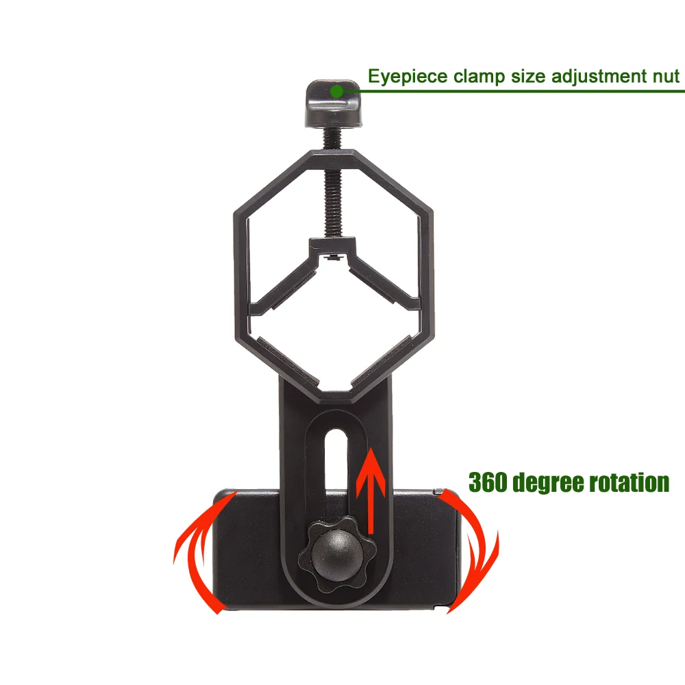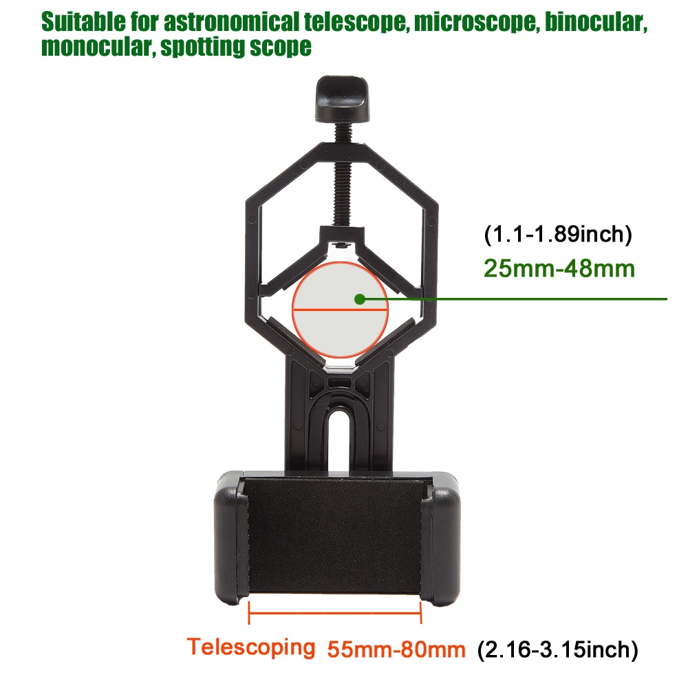 Diseño único, adecuado para varios tamaños de teléfonos, cámaras y telescopios.