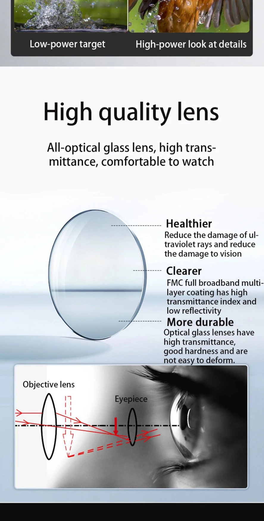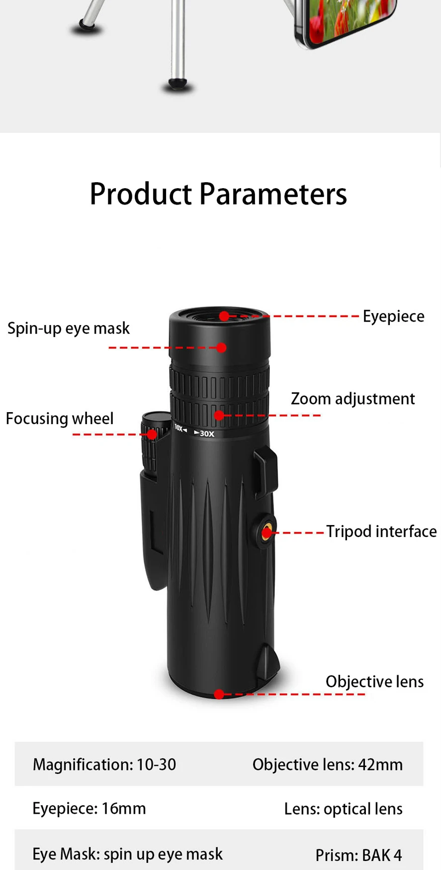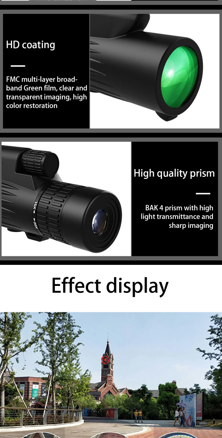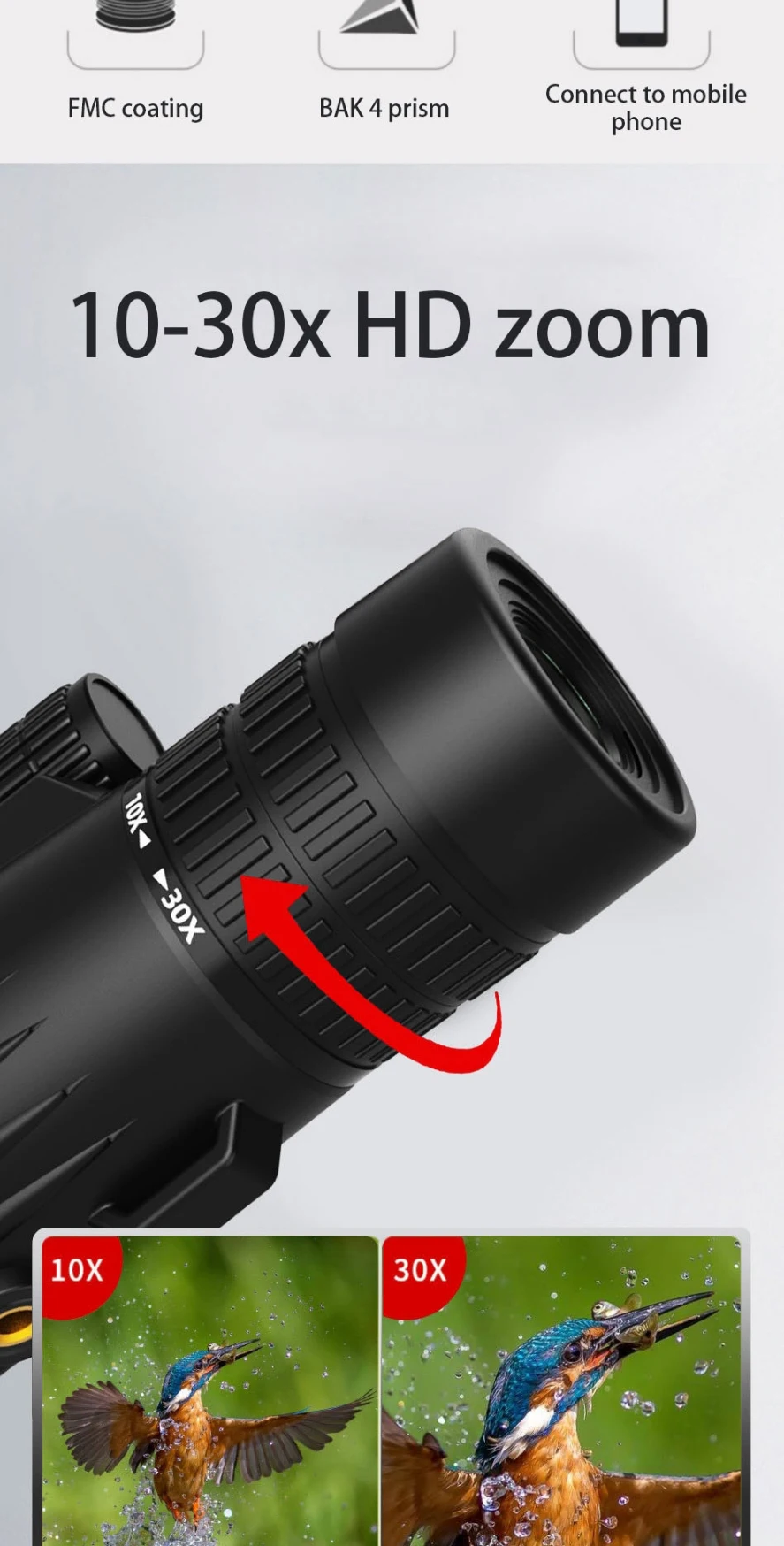 Borwolf-telescopio Monocular Bak4 con Clip para teléfono, binoculares impermeables para caza, waving de aves, 10-30x42