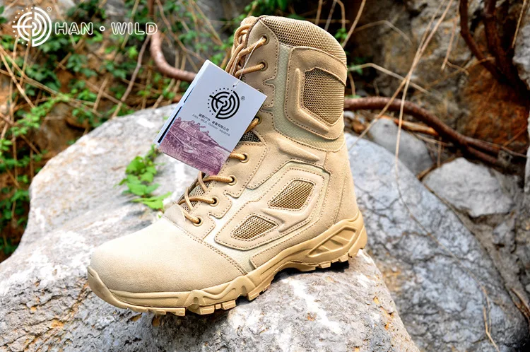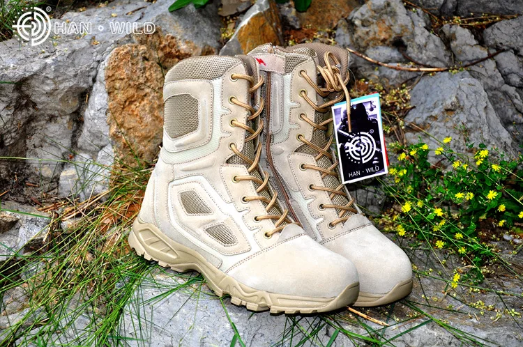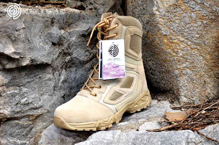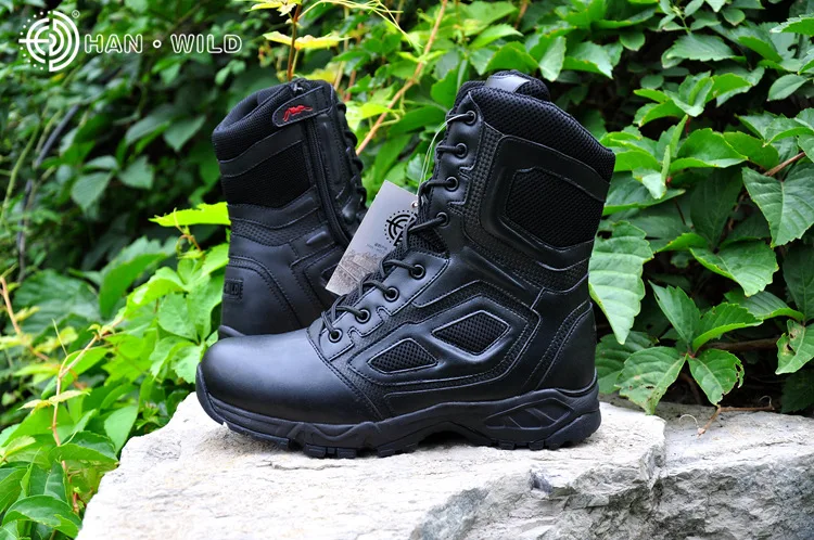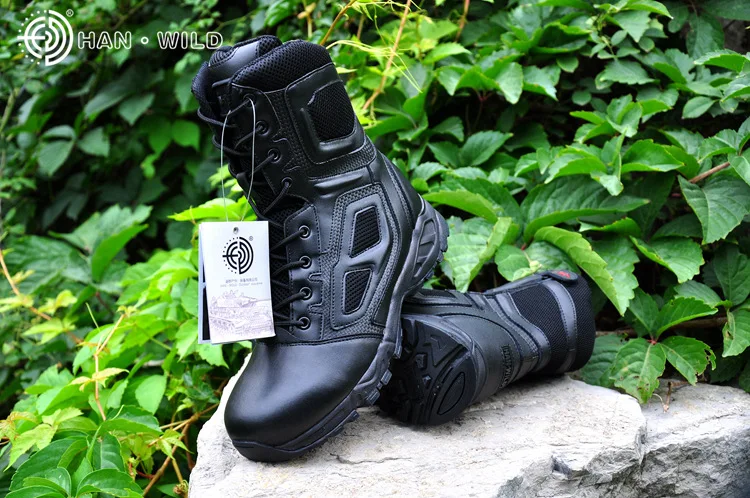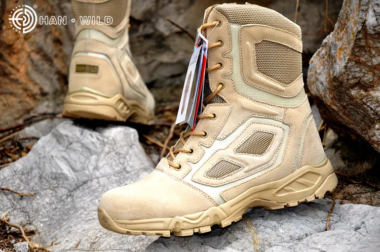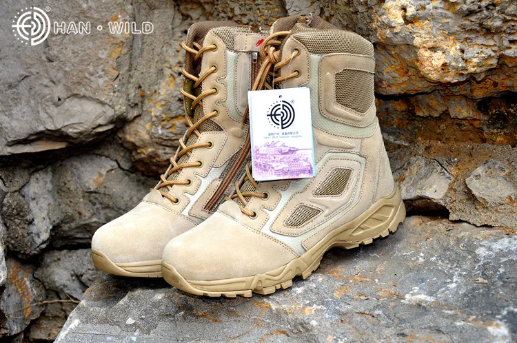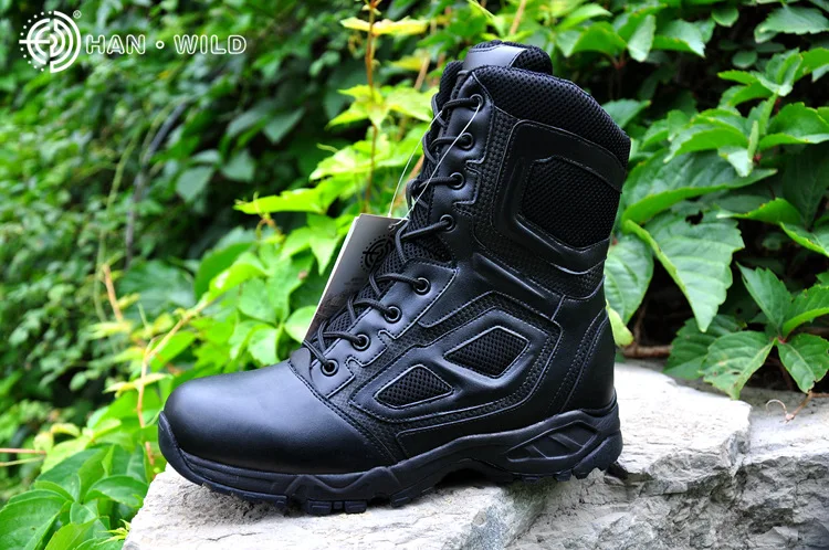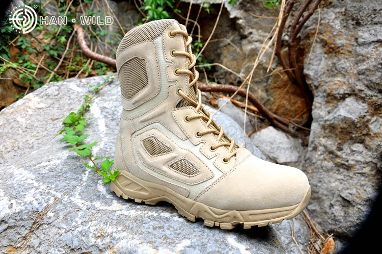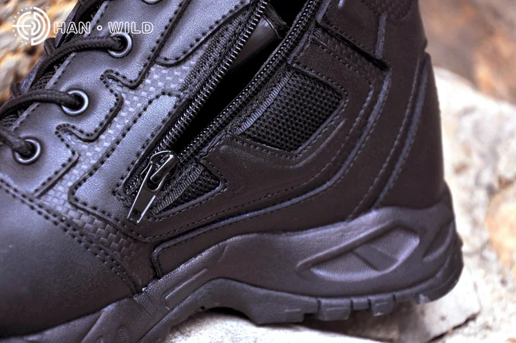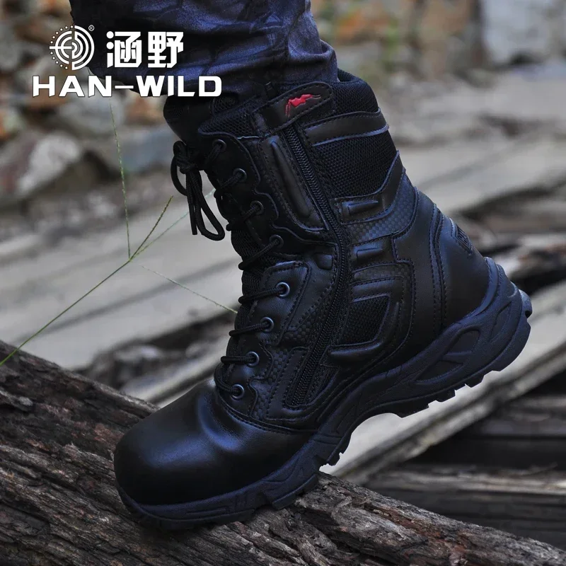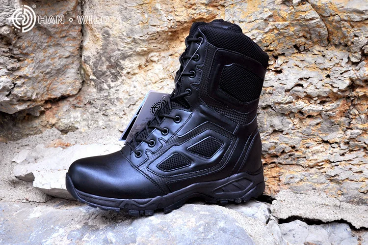 Bota de cuero genuino para hombre, zapatos de seguridad impermeables con cordones Vintage, botines tácticos de combate en el desierto negros