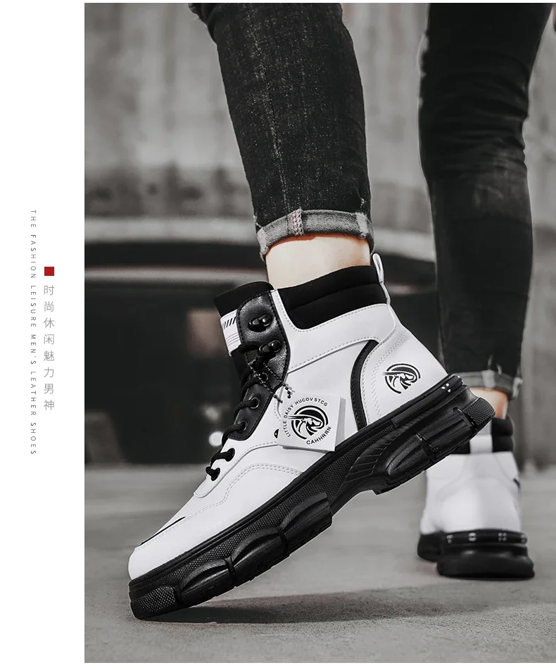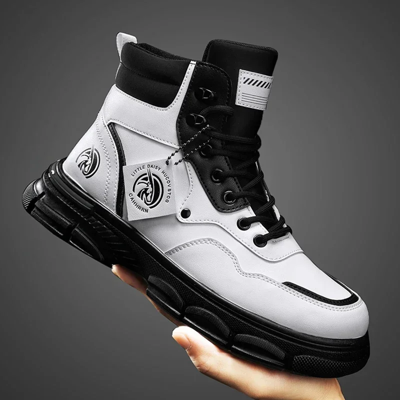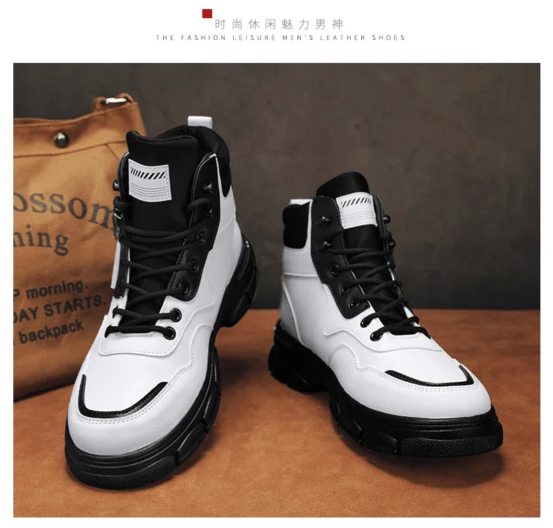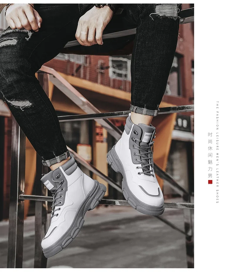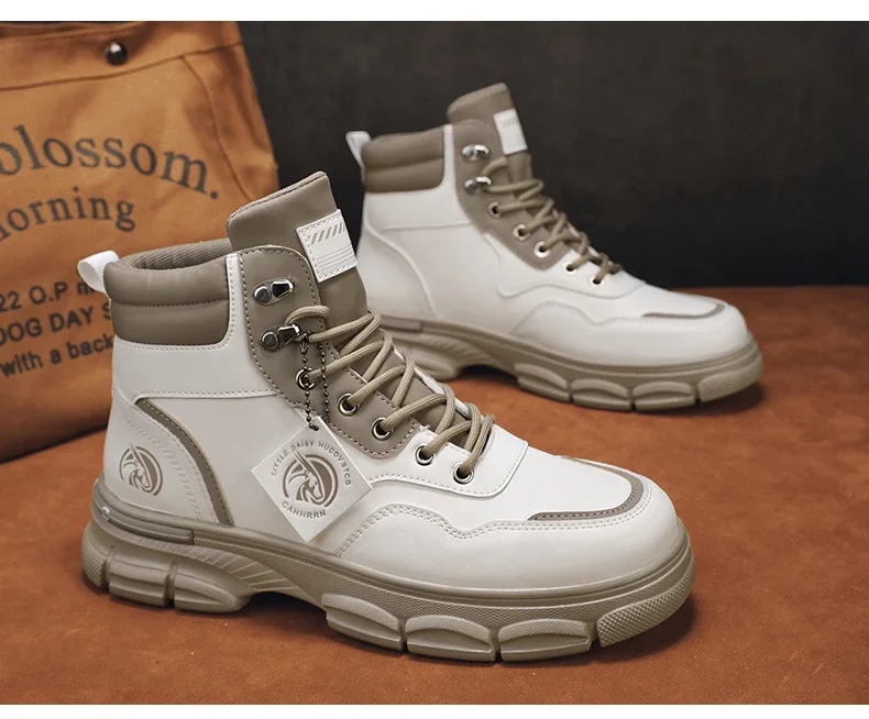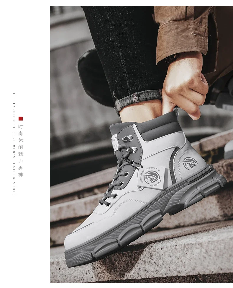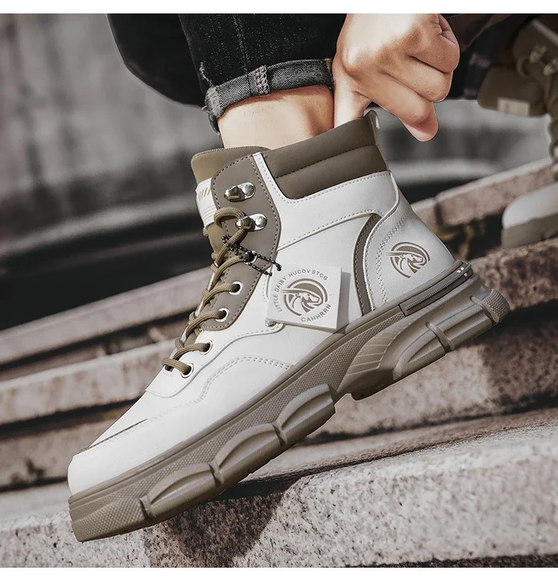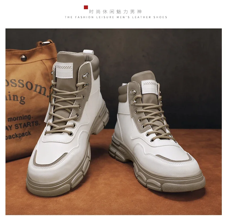 Botas altas informales, zapatos de cuero para hombre, botas militares de tobillo para motocicleta a la moda para exteriores, botas tácticas de invierno para hombre