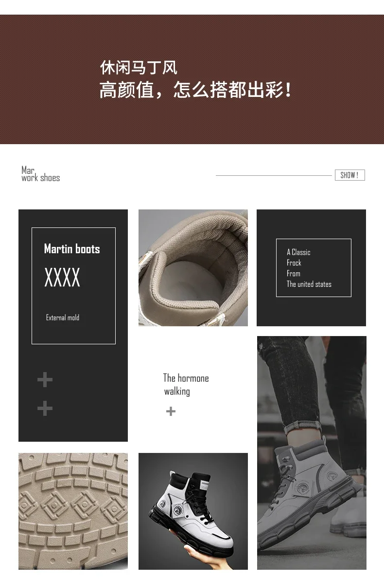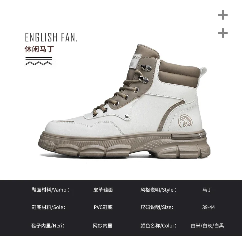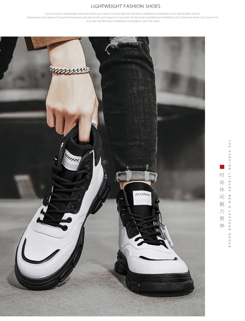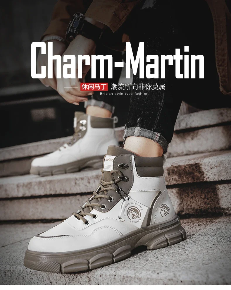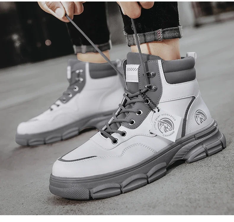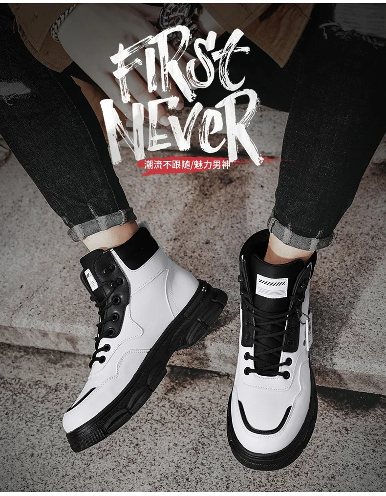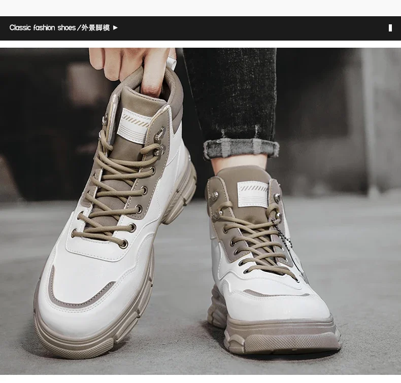 Botas altas informales, zapatos de cuero para hombre, botas militares de tobillo para motocicleta a la moda para exteriores, botas tácticas de invierno para hombre