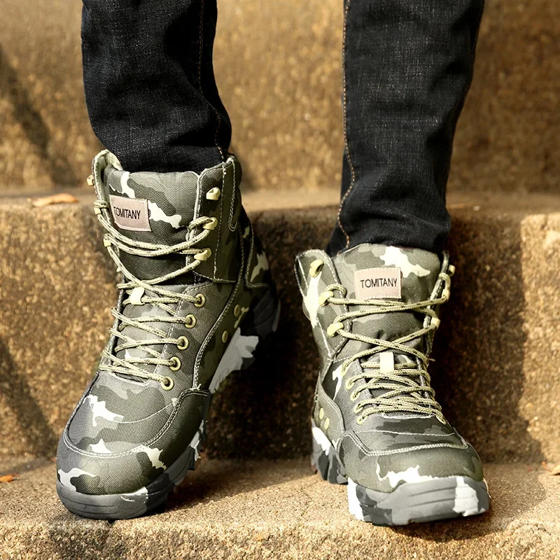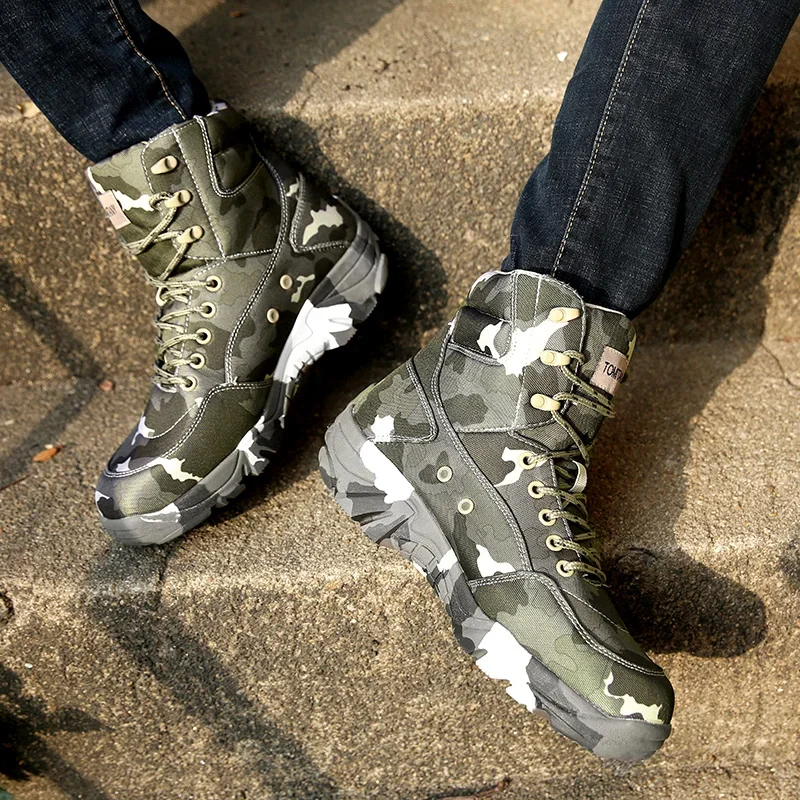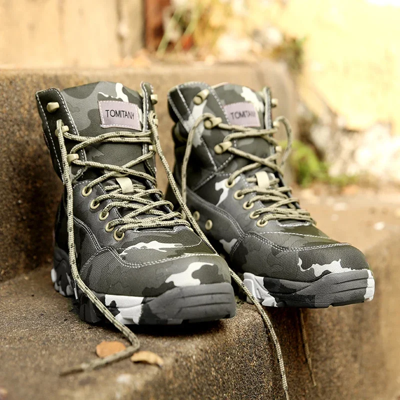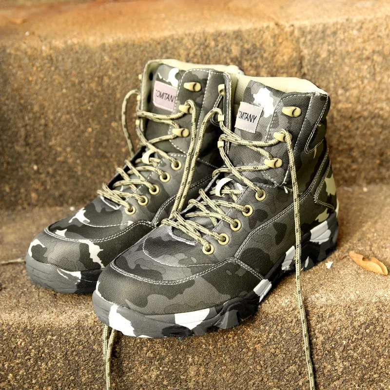 Botas tácticas de primavera y otoño para hombre, botines de combate en el desierto de lona impermeables de camuflaje, zapatos de trabajo para hombre